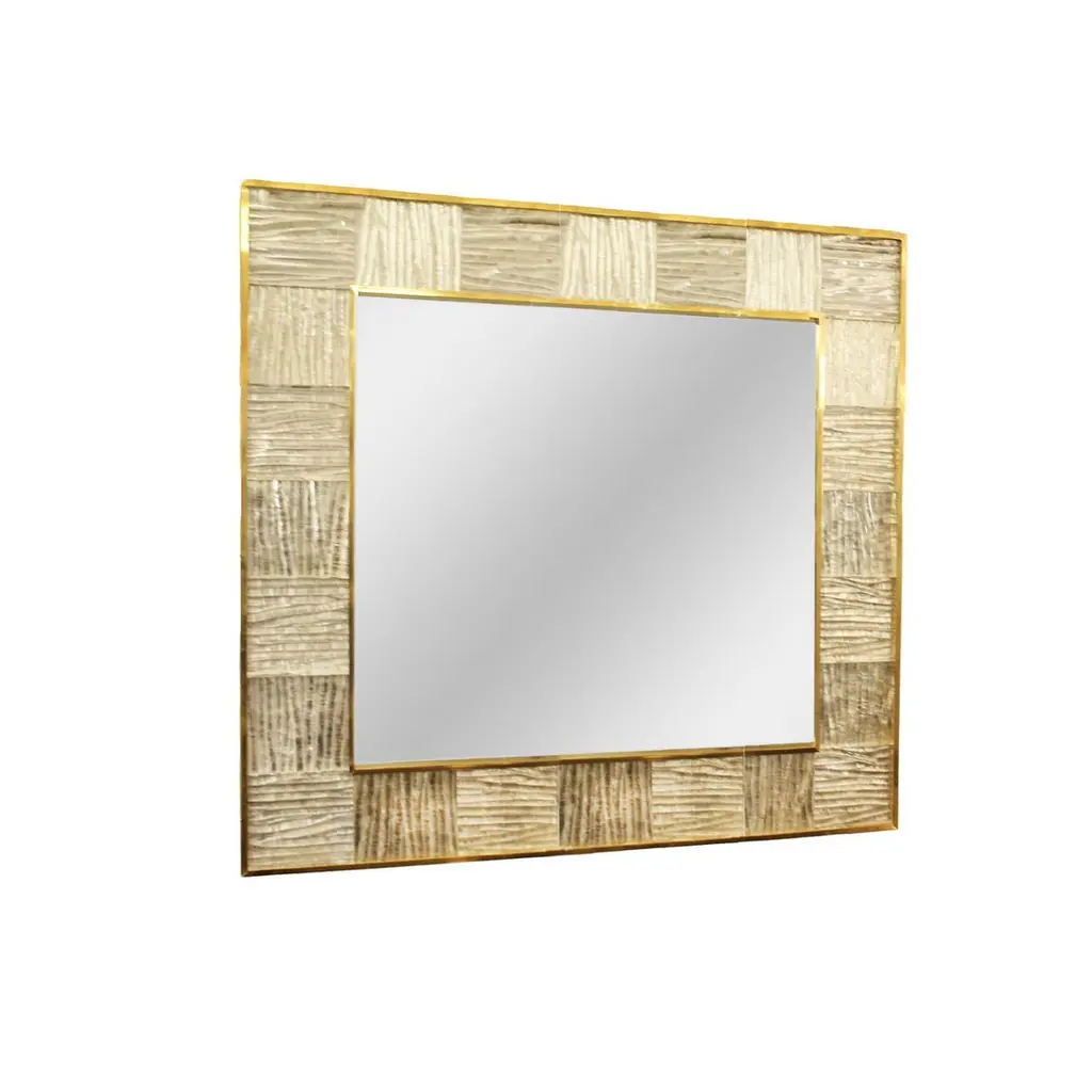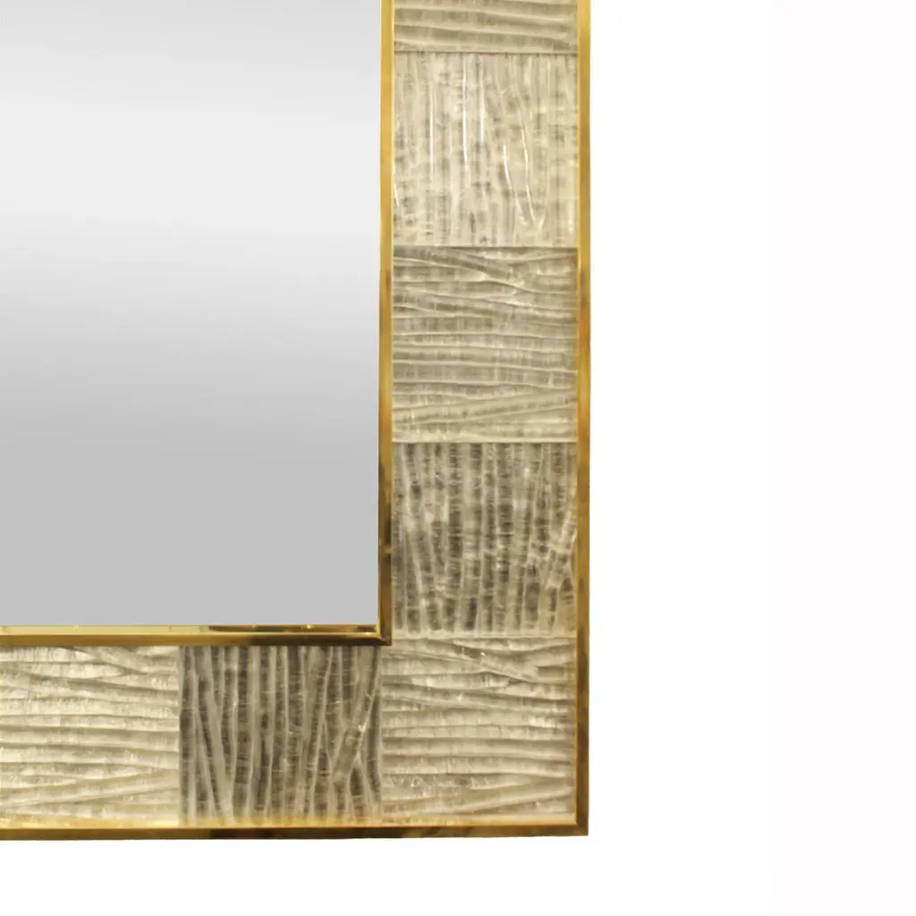Artisan Murano Glass Tile And Brass Framed Mirror