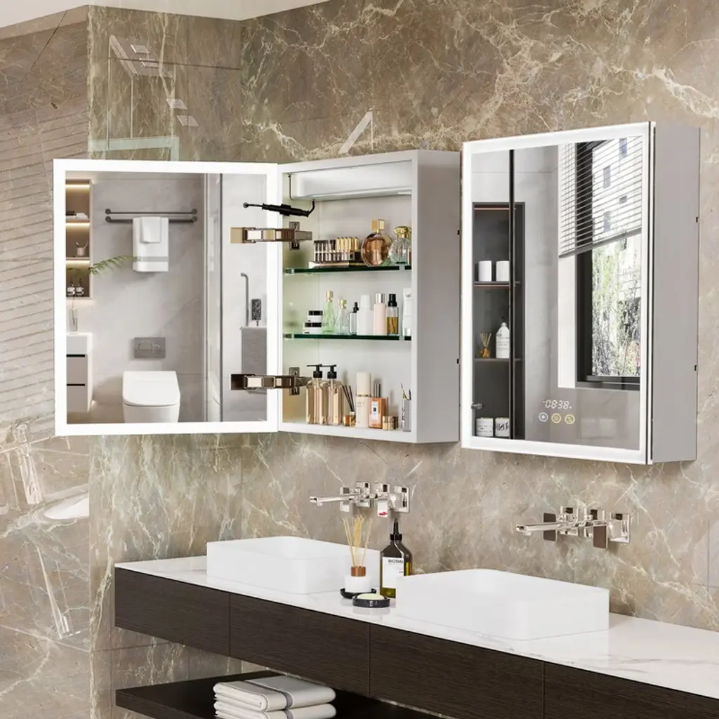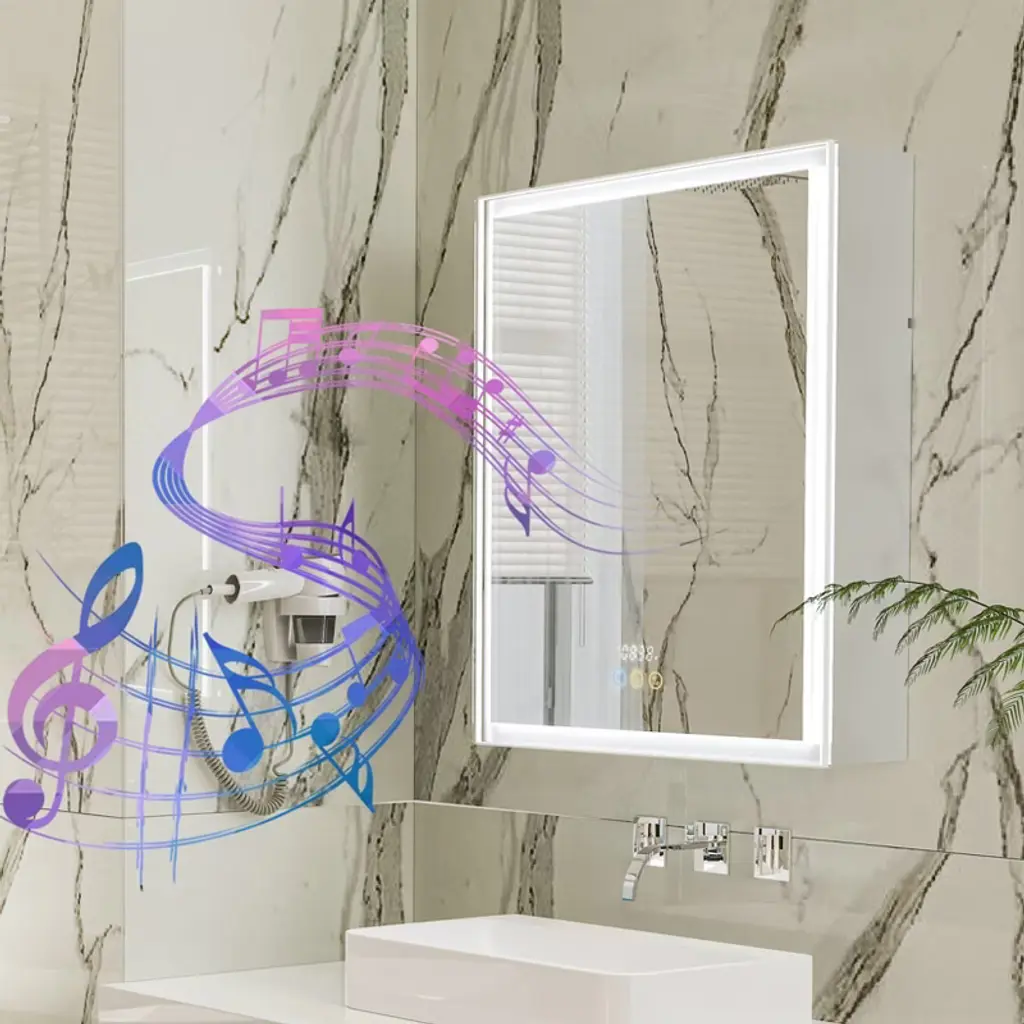 Artloge Aluminum Led Bathroom Mirror Cabinet Bluetooth Speaker Anti-fog Makeup Mirror