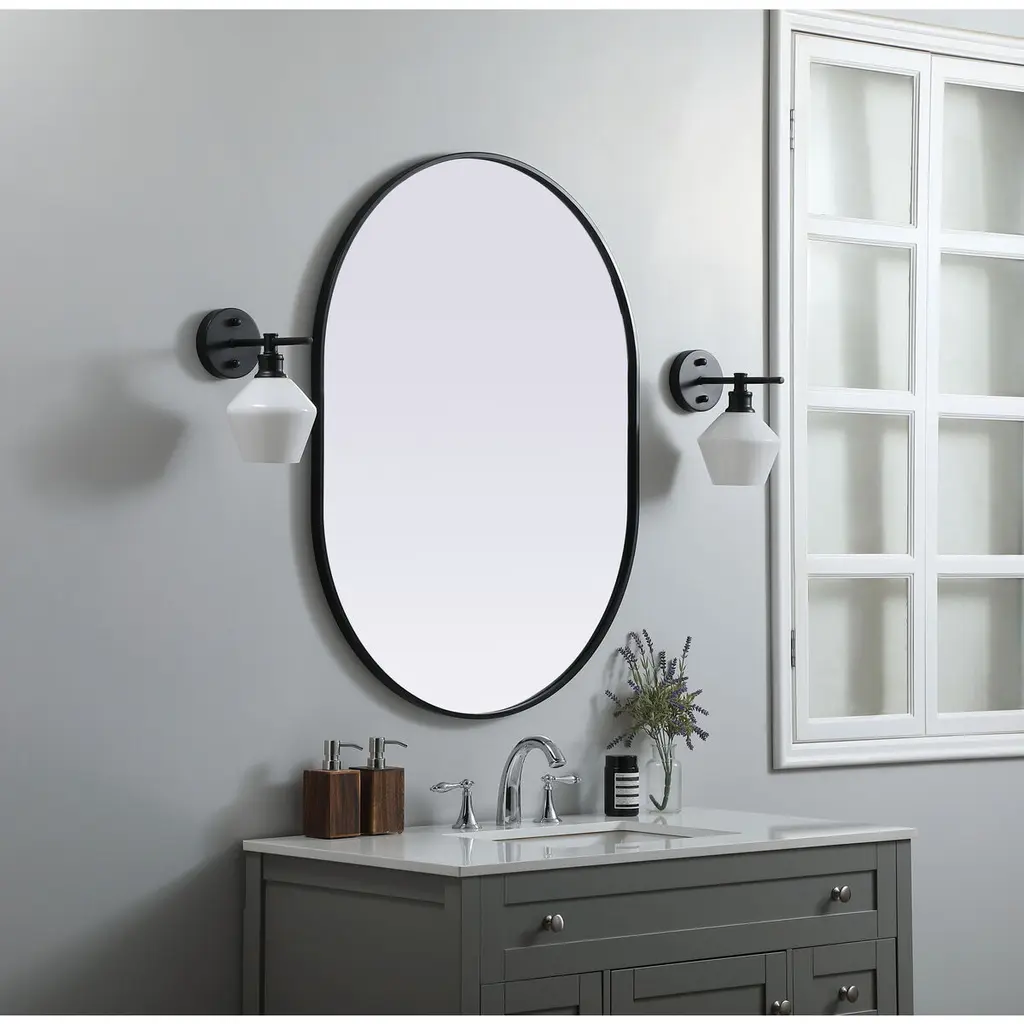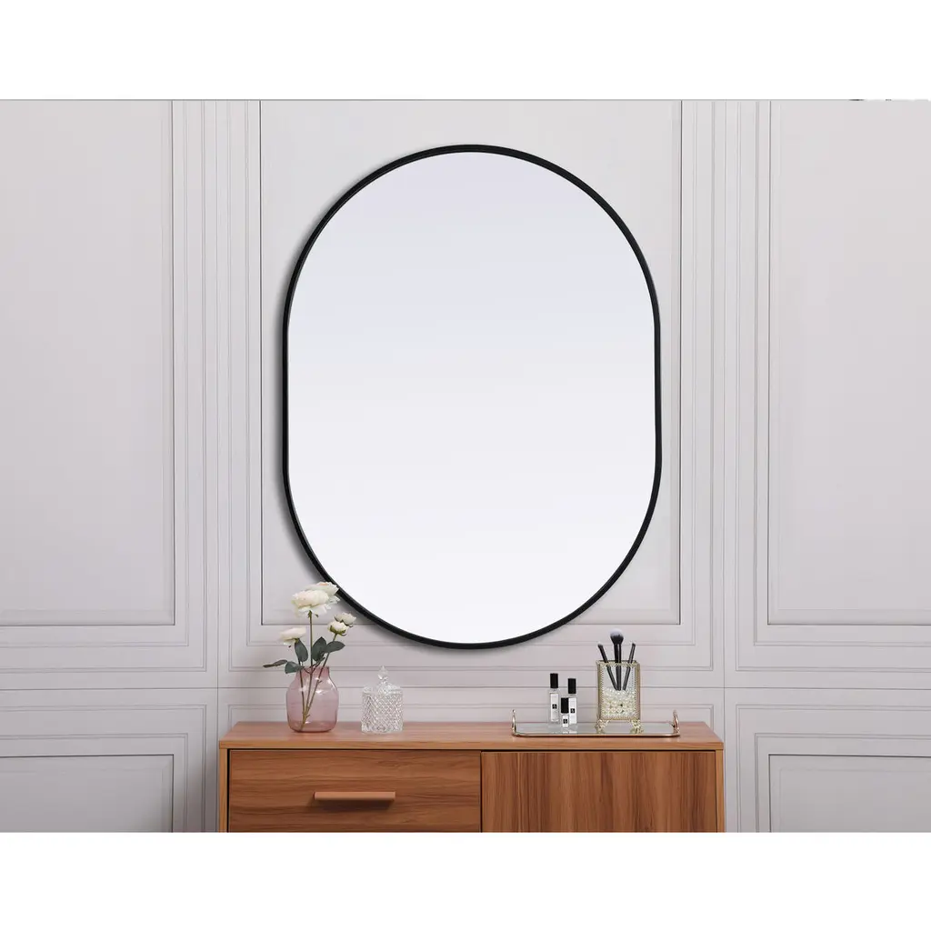 Instantly open up any space in your home with this minimalist wall-mounted mirror. Crafted of metal, this mirror strikes a pill-shaped silhouette. Its slender, clean-lined frame sports a classic finish, while the glass mirror within features a flat, for a brilliant reflection, letting the light bounce off to expand your space. Designed in a pill shape, this metal-frame mirror showcases in the three available satin finishes in black, brass, or silver. Mount this work of art in any room of your choice for added visual impact.