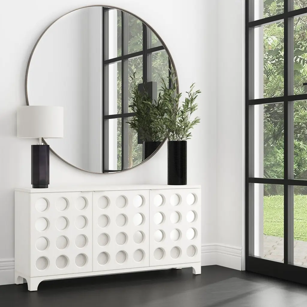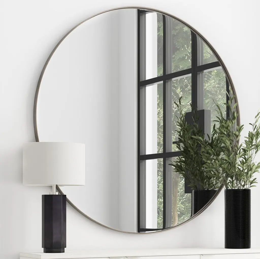 The Ashley Wall Mirror epitomizes modern sophistication, with a sleek and slender metal frame. Its round shape adds a touch of contemporary flair, while the mirror's minimalist design showcases the beauty of simplicity.