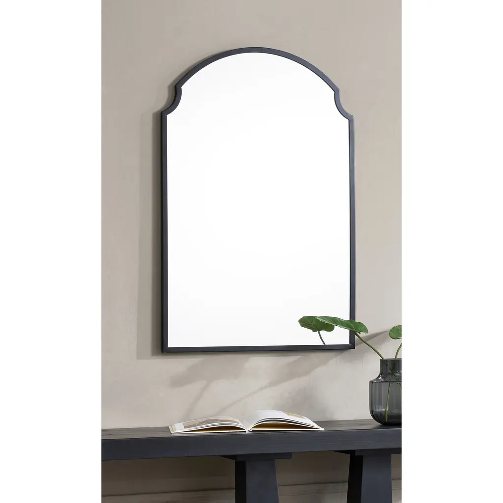 A matte black powder-coated finish adds a modern touch to a historically-inspired frame structure. At 24 inches in width and 36 in height, it holds impact in the entryway, bedroom or living room space. Within the classic interior it adds a dramatic edge while in the contemporary space it offers a touch of tradition.