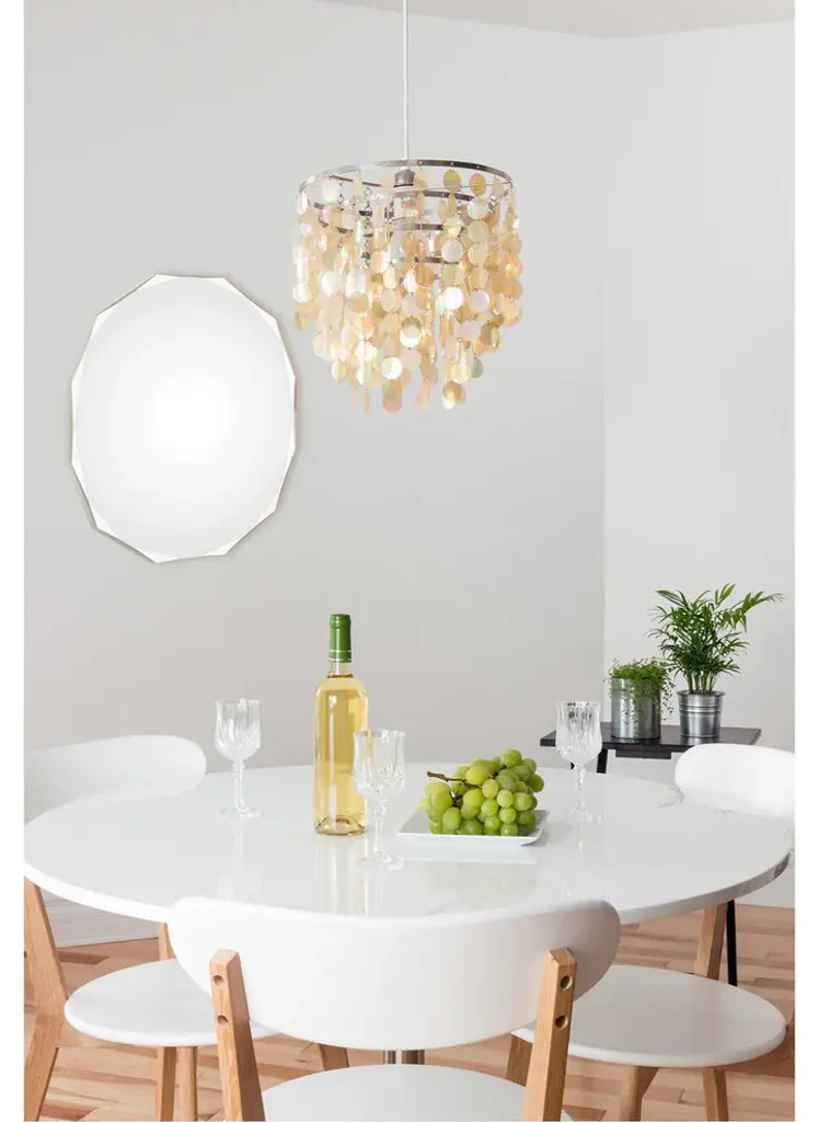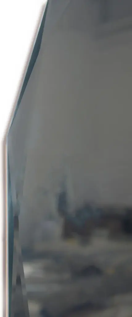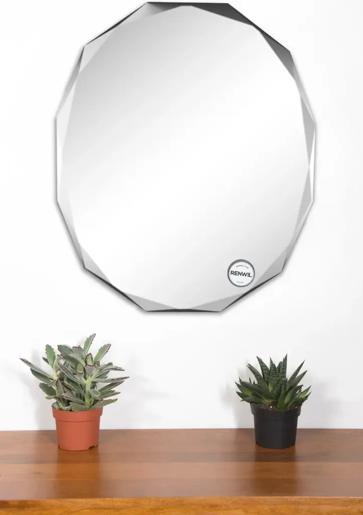 A unique polygonal shape makes this polished all-glass mirror an elegant addition to any room. May be hung horizontally of vertically. This piece would look amazing in a Transitional-style home. This wall mirror makes a grand statement in a living room, bedroom or entryway.Format: PolygonFrame Material: All glassFrame Finish: All glassHanging Hardware Included?: YesHanging Direction: Horizontally and VerticallyFramelessHardware Included: Yes