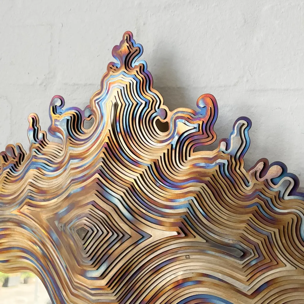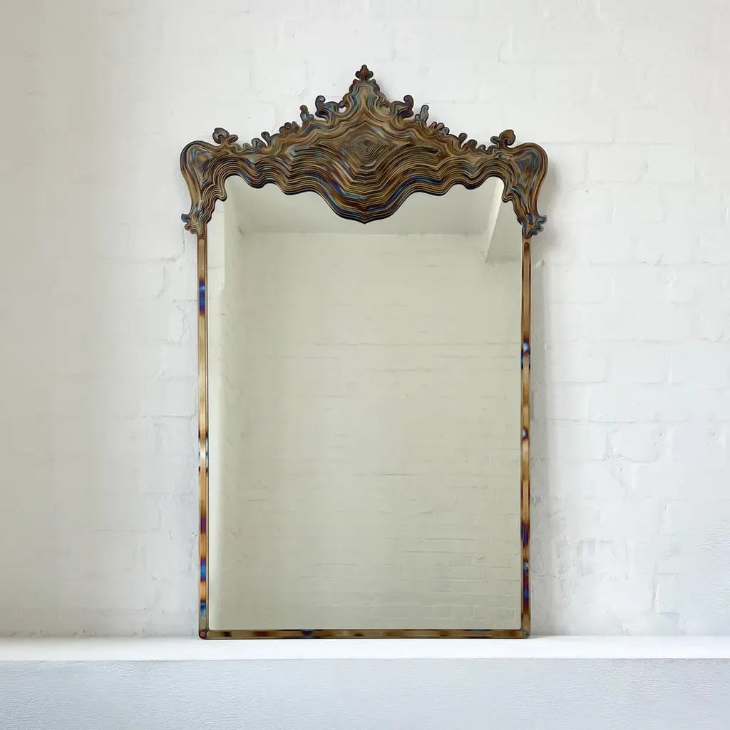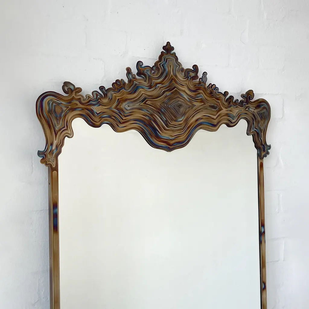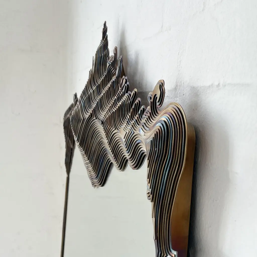 Asturias™ special edition mirror with a stunning tempered stainless steel frame. Handcrafted & designed in London, UK. Shipped worldwide.Introducing the latest stunning creation by mirror designer JL Alguacil.Always drawing inspiration from nature, Alguacil’s newest special edition—the Asturias Mirror—pays tribute to the dramatic landscapes of Asturias, where mountains meet the sea along a breathtaking coastline.In this piece, the designer takes his signature metal layering technique to new heights, adding intricate detail and exceptional precision. The result is a highly crafted and technically sophisticated work of art.The frame features a unique steel-burned finish, evoking the warm tones and textures of autumn leaves—an unexpected and beautiful nod to the natural world.A one-of-a-kind mirror of extraordinary craftsmanship and astonishing aesthetic impact.Dimensions (customisable):H 113cm x W 72.7cm x D 3.1cm / H 44.5 in x W 28.7 in x D 1.21 inShipped safely and insured worldwide. All our mirrors are made on demand. Fabrication lead time for this mirror is approximately 7-8 weeks. Our mirrors are shipped by courier express, which typically requires 1 to 2 days to the UK, or 2 to 7 days outside the UK depending on the destination.ORDERS OF MULTIPLE MIRRORS OF THE SAME TYPE: Please contact us to receive a Packing and Shipping quote when ordering multiple mirrors of the same type. An order for multiple mirrors of the same type may not be accepted without extra packing and shipping fees. Thank you.