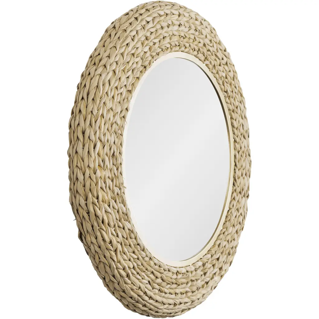 A stunning piece of functional art that captures the essence of Greek mythology and sustainable craftsmanship. Crafted with meticulous care, this hand-made mirror is a testament to the artistry of skilled artisans who have woven together two distinct elements - sea grass and recycled steel - to create a unique and visually captivating piece. Inspired by the intricate braids adorning the hair of the Greek goddess Athena, this mirror embodies elegance, strength, and sustainability in perfect harmony. Available with a hand applied midnight blue stain with matte black accents or a natural seagrass with French gold accents and in a variety of sizes.