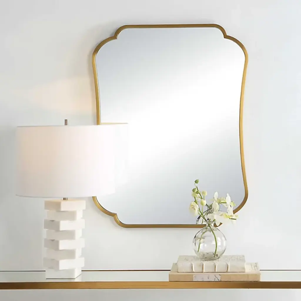 The Athena Mirror from Uttermost is a clean-lined mirror that features a frame crafted from stainless steel. Subtle contouring along the edges adds dimensional detail. Align Athena vertically for modern artistry or align it horizontally above a console for a linear silhouette. With its mix of lustrous metal framing and mirrored glass, this versatile accent provides beautiful reflection and brilliant texture.