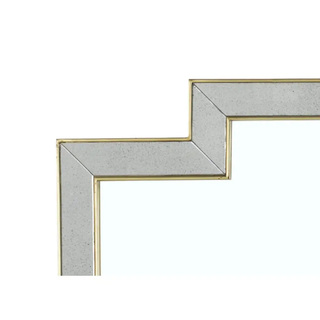 A beautiful blend of beveled lightly antiqued mirrored framing bordered with wood trim and surrounding a clear mirrored glass surface.