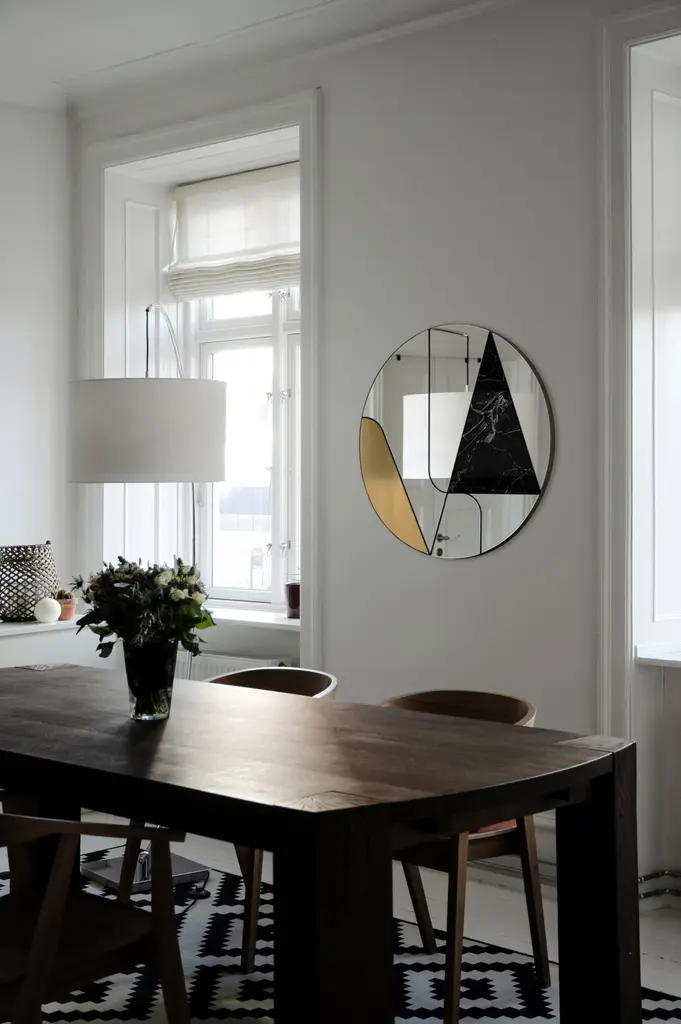 Atlas Itinera Insula I 90 Wall Mirror by Atlas ProjectDimensions: D 3/5 x Ø 90 cm. Materials: Black powder painted iron, Nero Marquina marble, brushed brass, mirror, and wood.Available in different finishes and sizes. Please contact us.ITINERAThe material fills the space. Elegantly combined materials give you a perfect balance of richness and simplicity.The Itinera Collection lends itself to customization, through the combination of materials and colors. For that purpose, we have selected a wide range of fine materials, each with its unique characteristics,to draw on to create your Itinera product according to your taste and needs.Our ProjectThe synergy between a thirty-year Italian craft experience and an original design, based on the need to research and develop topics up with the new aesthetic trends, gives birth to Atlasproject, an exclusive furniture collection conceived by the designer Massimiliano Giordano.Born and developed first in Copenhagen, then in Vienna and finally in Rome, the project is – as a matter of fact - a journey of contamination and encounter between the many cultures of the European Design.The production is focused on a dynamic dialogue between geometries and materials, which leads to collections of deep impact and elegance. Every piece merges essential geometric shapes with the most surprising materials, textures, and colors, as the result of a careful selection of natural materials and hand-processed metals.The Atlasproject collections are entirely made in Italy, where the tradition of artisanality is still a deep value, to ensure high-quality and long-life products.Of Neapolitan origins, Massimiliano Giordano grew up inthe family’s artistic atelier.The artisan knowledge and the design skills lead him to Atlasproject, a creative container inspired by the journey, leit motiv of his personal and professional life. In fact, the designer leaves from Naples towards Copenhagen, where he will stay for five years, and then for Vienna for five years more in the heart of the Mitteleuropean design, and finally in Rome, where he currently lives and works.The amazing connections between the encountered design souls actually represent the most significant stylistic figure of his works.