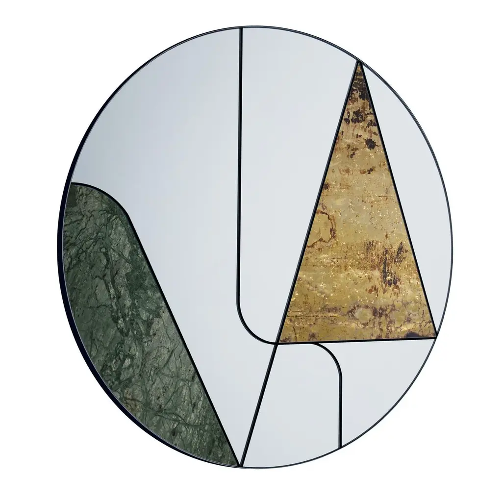Atlas Itinera Insula III 120 Wall Mirror by Atlas ProjectDimensions: D 3/5 x Ø 120 cm. Materials: Black powder painted iron, Green Guatemala marble, antique brass, mirror, and wood.Available in different finishes and sizes. Please contact us.ITINERAThe material fills the space. Elegantly combined materials give you a perfect balance of richness and simplicity.The Itinera Collection lends itself to customization, through the combination of materials and colors. For that purpose, we have selected a wide range of fine materials, each with its unique characteristics,to draw on to create your Itinera product according to your taste and needs.Our ProjectThe synergy between a thirty-year Italian craft experience and an original design, based on the need to research and develop topics up with the new aesthetic trends, gives birth to Atlasproject, an exclusive furniture collection conceived by the designer Massimiliano Giordano.Born and developed first in Copenhagen, then in Vienna and finally in Rome, the project is – as a matter of fact - a journey of contamination and encounter between the many cultures of the European Design.The production is focused on a dynamic dialogue between geometries and materials, which leads to collections of deep impact and elegance. Every piece merges essential geometric shapes with the most surprising materials, textures, and colors, as the result of a careful selection of natural materials and hand-processed metals.The Atlasproject collections are entirely made in Italy, where the tradition of artisanality is still a deep value, to ensure high-quality and long-life products.Of Neapolitan origins, Massimiliano Giordano grew up inthe family’s artistic atelier.The artisan knowledge and the design skills lead him to Atlasproject, a creative container inspired by the journey, leit motiv of his personal and professional life. In fact, the designer leaves from Naples towards Copenhagen, where he will stay for five years, and then for Vienna for five years more in the heart of the Mitteleuropean design, and finally in Rome, where he currently lives and works.The amazing connections between the encountered design souls actually represent the most significant stylistic figure of his works.