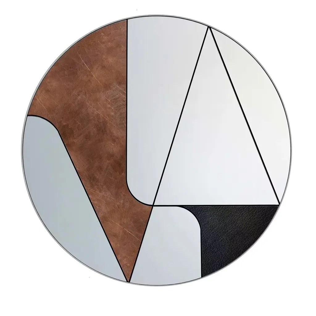 Atlas Itinera Insula IV 90 Wall Mirror by Atlas ProjectDimensions: D 3/5 x Ø 90 cm. Materials: Black powder painted iron, steel corten, black leather, mirror, and wood.Available in different finishes and sizes. Please contact us.ITINERAThe material fills the space. Elegantly combined materials give you a perfect balance of richness and simplicity.The Itinera Collection lends itself to customization, through the combination of materials and colors. For that purpose, we have selected a wide range of fine materials, each with its unique characteristics,to draw on to create your Itinera product according to your taste and needs.Our ProjectThe synergy between a thirty-year Italian craft experience and an original design, based on the need to research and develop topics up with the new aesthetic trends, gives birth to Atlasproject, an exclusive furniture collection conceived by the designer Massimiliano Giordano.Born and developed first in Copenhagen, then in Vienna and finally in Rome, the project is – as a matter of fact - a journey of contamination and encounter between the many cultures of the European Design.The production is focused on a dynamic dialogue between geometries and materials, which leads to collections of deep impact and elegance. Every piece merges essential geometric shapes with the most surprising materials, textures, and colors, as the result of a careful selection of natural materials and hand-processed metals.The Atlasproject collections are entirely made in Italy, where the tradition of artisanality is still a deep value, to ensure high-quality and long-life products.Of Neapolitan origins, Massimiliano Giordano grew up inthe family’s artistic atelier.The artisan knowledge and the design skills lead him to Atlasproject, a creative container inspired by the journey, leit motiv of his personal and professional life. In fact, the designer leaves from Naples towards Copenhagen, where he will stay for five years, and then for Vienna for five years more in the heart of the Mitteleuropean design, and finally in Rome, where he currently lives and works.The amazing connections between the encountered design souls actually represent the most significant stylistic figure of his works.