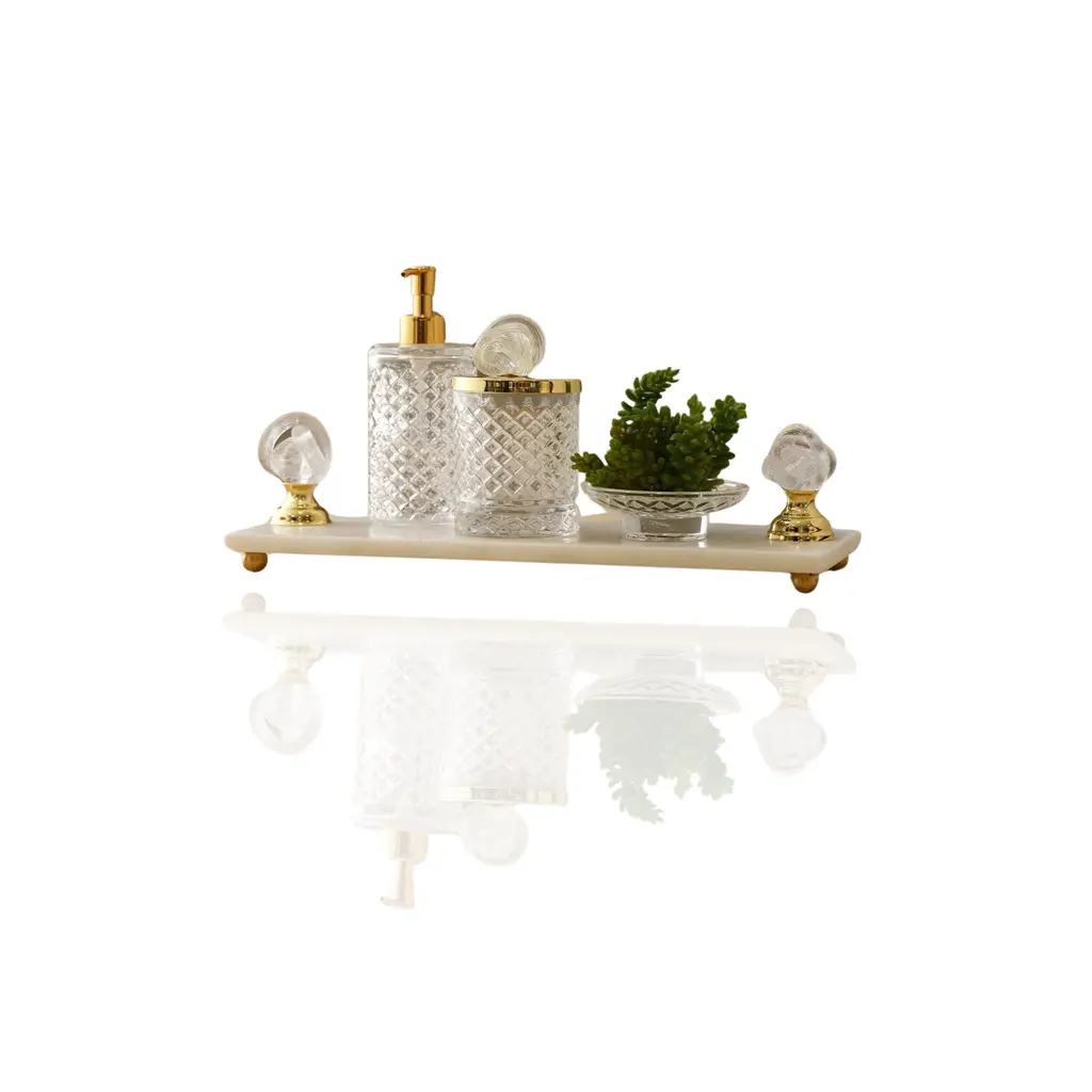 Subtle elegance defines the Audrey Collection. Each piece is hand enameled and trimmed with a fine strand of gold rhinestone chain. A handsome addition to the traditional bathroom interior. Established 30 years ago in New York, Mike & Ally is known worldwide for their elegant, handmade enamel and lucite bath accessories. All items custom made to order; please allow 6 weeks for delivery. Please make your selection carefully; orders cannot be cancelled once submitted and items are not returnable.
