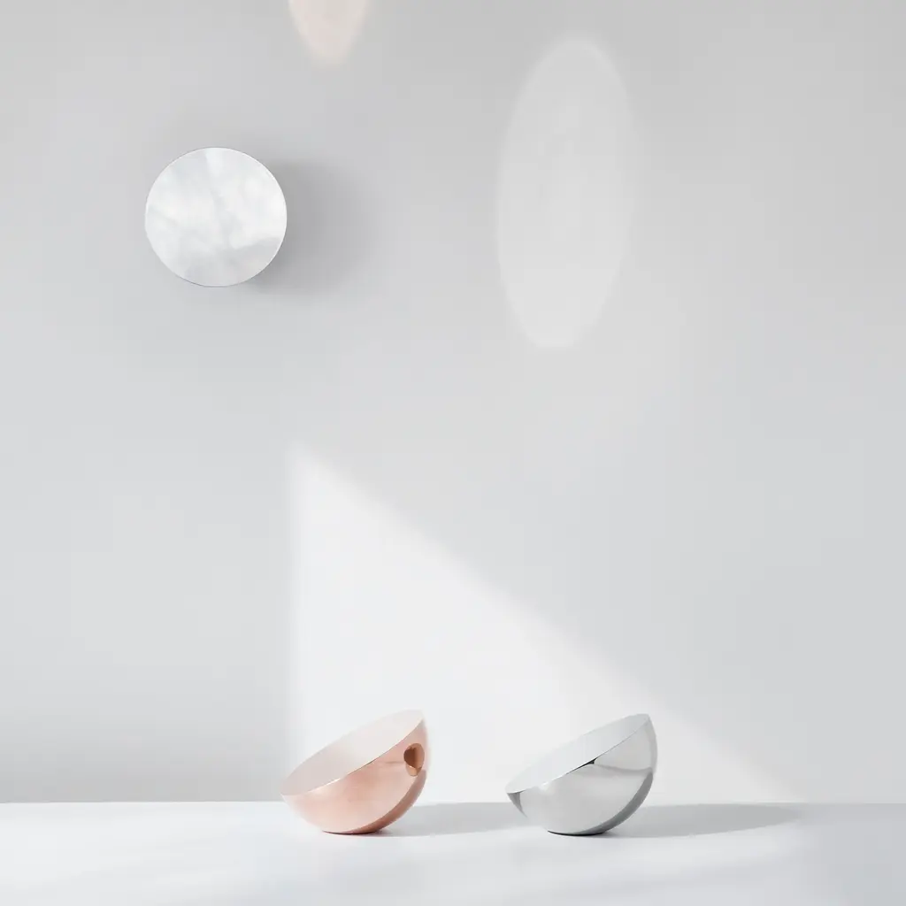 The atmospheric reflections of the boldly curved Aura series include this striking wall mirror. Oslo-based designer Bjørn Van Den Berg says he intends his concave form rendered in highly polished stainless steel to elicit an emotional connection while in use. With its mesmerizing depths, Aura certainly leaves a memorable impression in any setting.