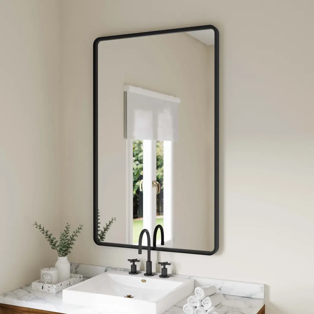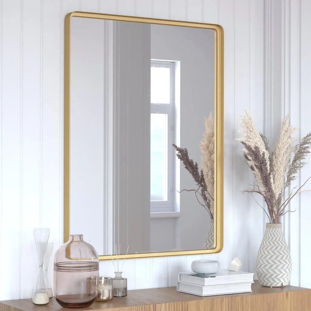 Little touches that showcase your personal style are what transform a generic space into your place and this wall mirror is a great looking addition. Beautifully crafted from premium materials, this deep frame metal mirror may be hung horizontally or vertically to help brighten your room while giving the illusion of depth which is great for smaller areas. Made with genuine silver backing, it gives a distortion free reflection every time. The inlayed keyhole back allows this large decorative wall mirror to lay flush against the wall and includes 3 anchor options that accommodate most wall types. Reflection is good for the soul so add one of these rectangular mirrors in your living room, bathroom, bedroom, entryway or anywhere else that could use a facelift. The included level and installation instructions ensure your new mirror is ready to go in short order and looks great when you're finished.
