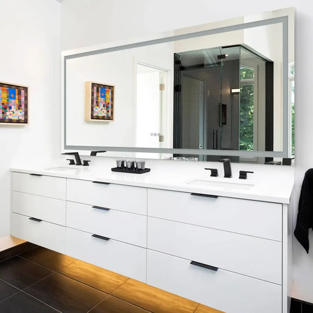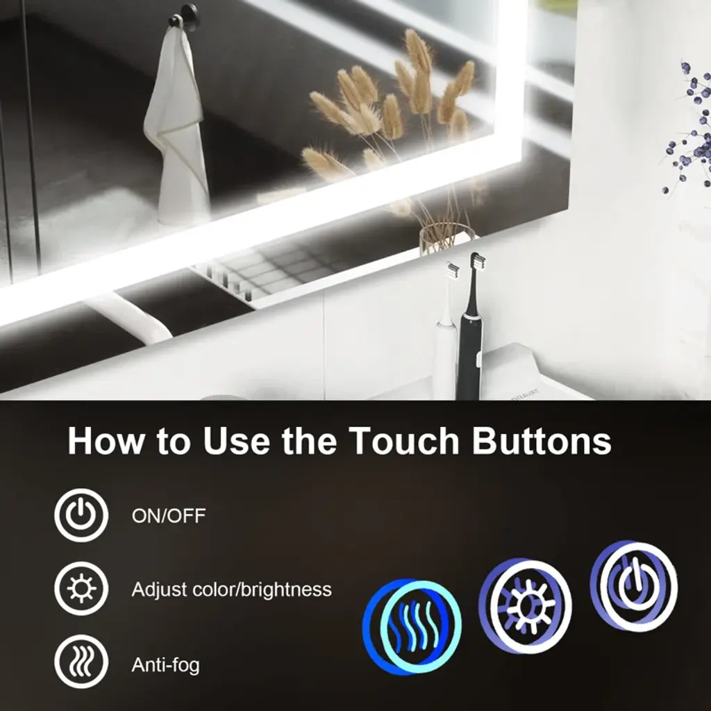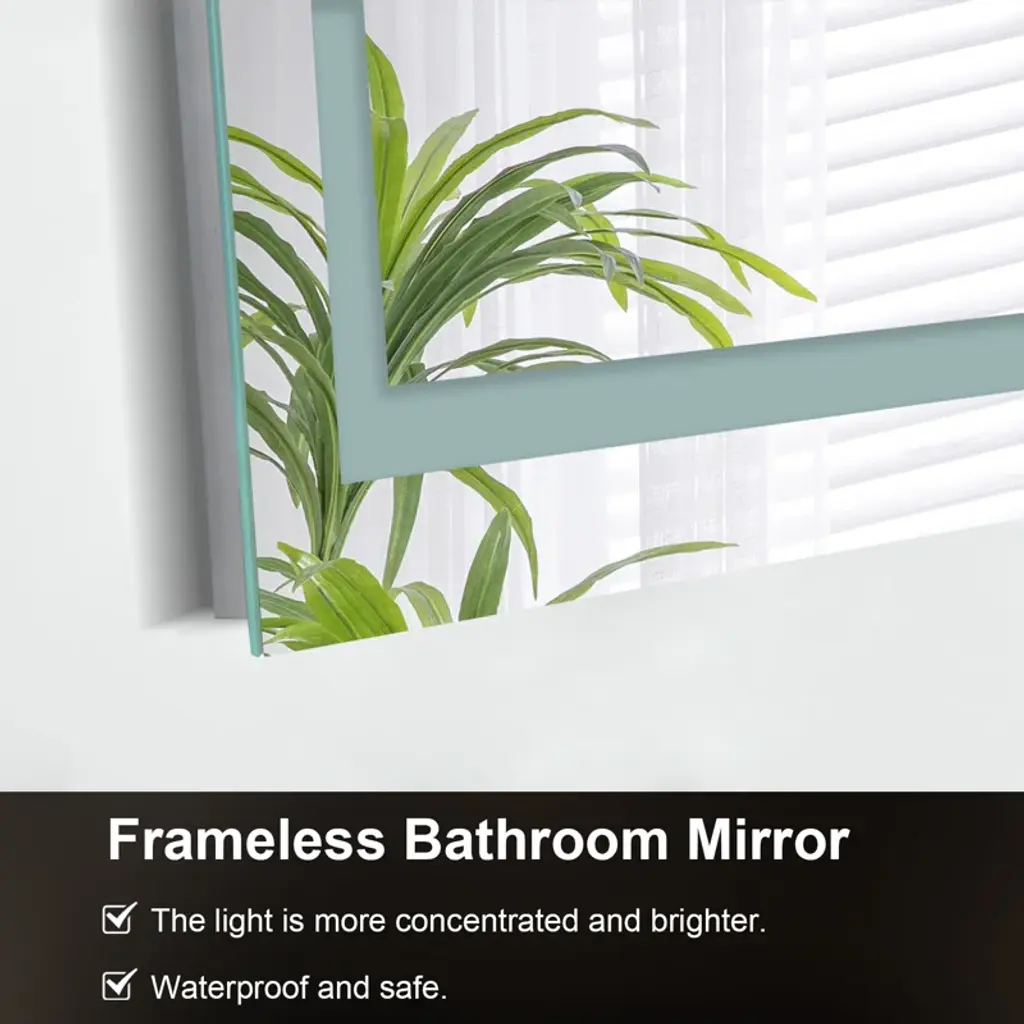 This LED Bathroom Mirror for wall is designed with frameless rectangle,it provides a sophisticated look & the modern feeling, this simple yet elegant design can match your bathroom hardware very well,adds elegance and class to your bathroom.Our LED wall mirror features high-quality LED strips that are energy efficient and bright, economically and environmentally sound.With its longer lifespan and high performance,this LED vanity mirror is the perfect choice for your bathroom.You can change the color temp to 3000K/4500K/6000K,or dim the brightness to 10%-100%,just easily controlled by the three touch buttons, customize your comfortable atmosphere.The memory function will record the light settings to next turning on.Equipped with anti-fog technology, the anti fog mirror bathroom remains clear and free of condensation even in a steamy bathroom.This bathroom mirror led light is perfect for those who want a clear reflection during and after a shower.This LED mirror for bathroom can be installed with either plug-in or hardwire options.If you use a hardwired wall switch control,professional electrician is needed.Different sizes also meets the different needs of cloakroom and hair salon.