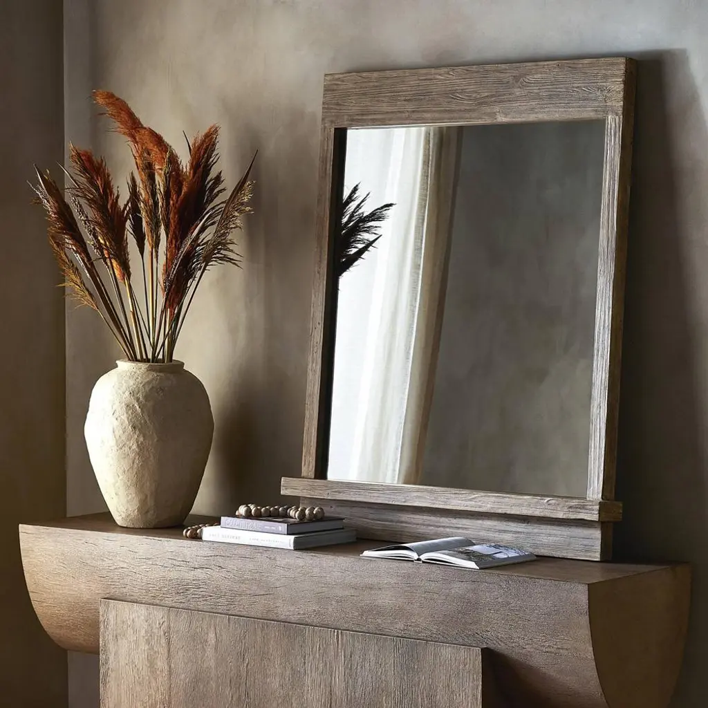 Avo Rustic Lodge Distressed Light Brown Wood Rectangular Wall Mirror
