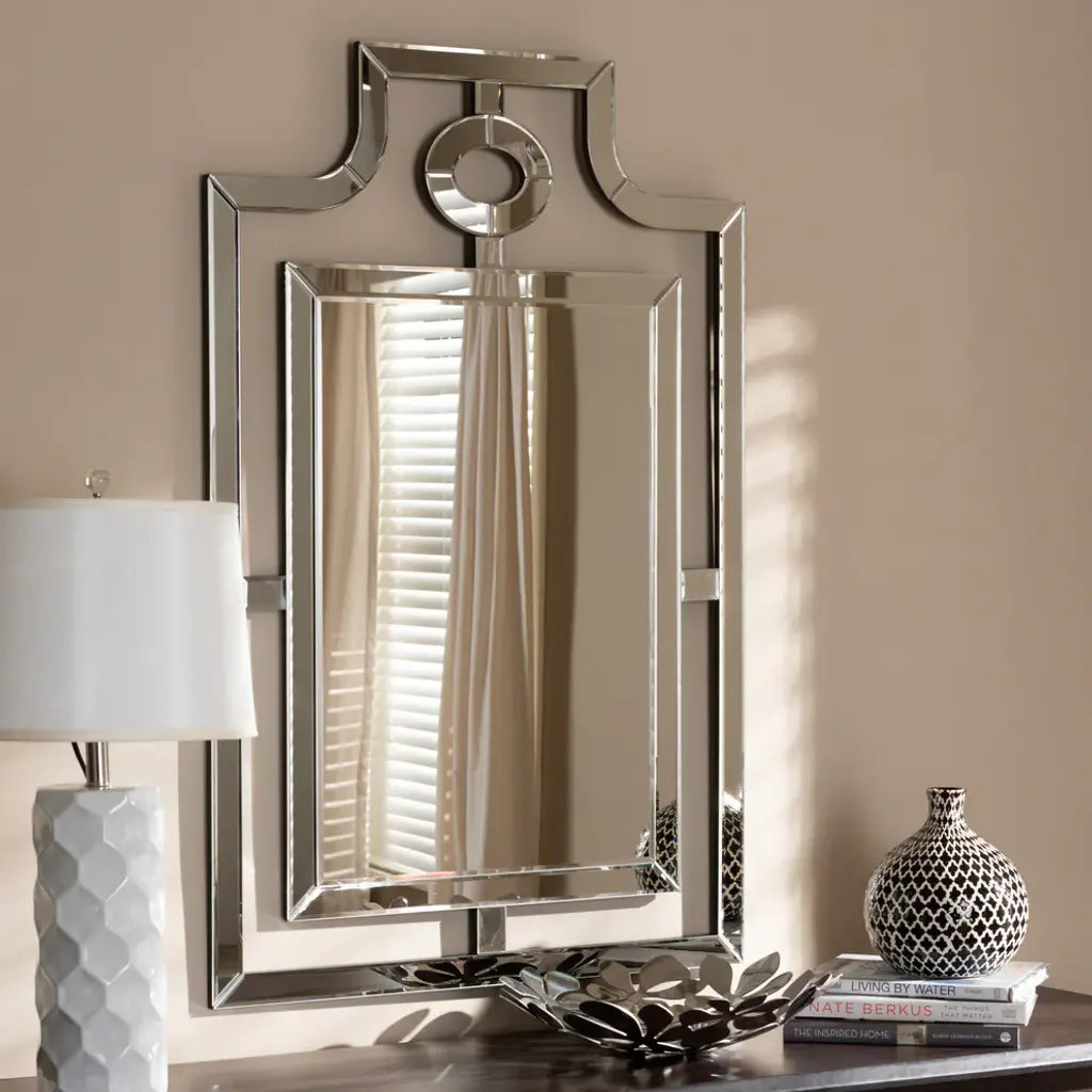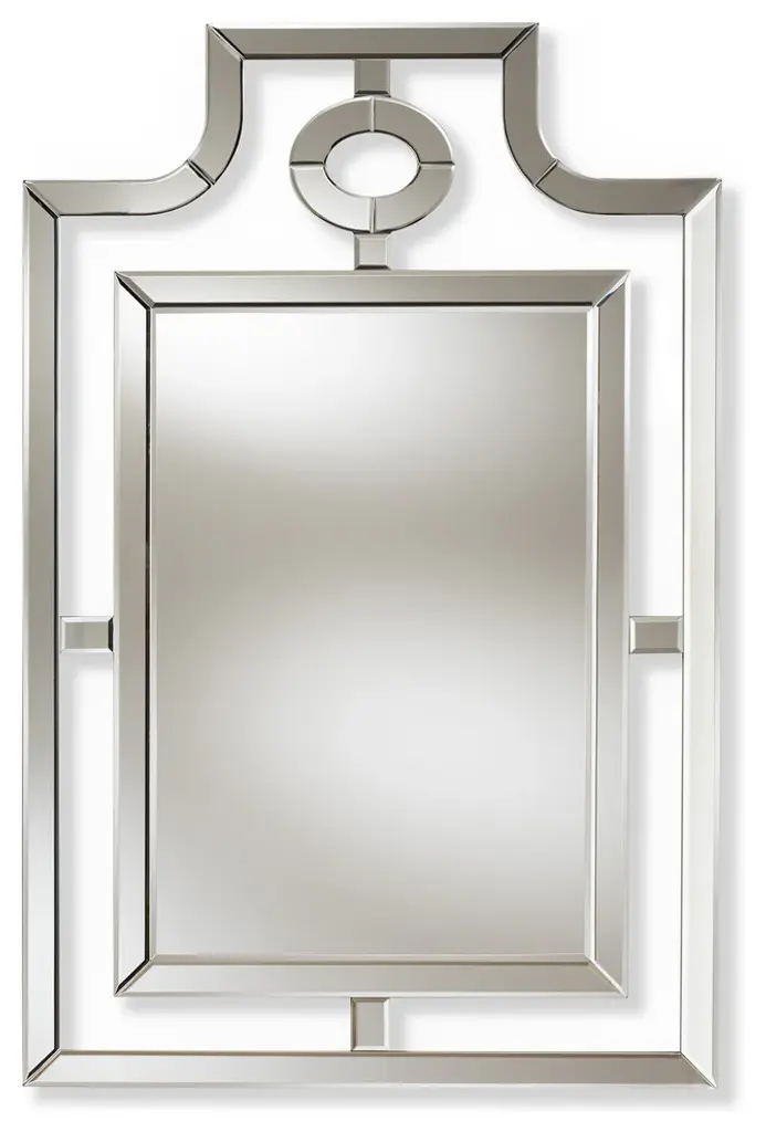 Featuring a captivating shape, the Axelle wall mirror will add unique flair to any space. Finely crafted from MDF wood and mirror, the Axelle features a rectangular mirror flanked by a pagoda-shaped frame. Beveled edges on both the central mirror and frame add a touch of elegance. Place this mirror in the entryway, living room, or bedroom to create a stunning focal point. The Axelle wall mirror is made in China and will arrive fully assembled.