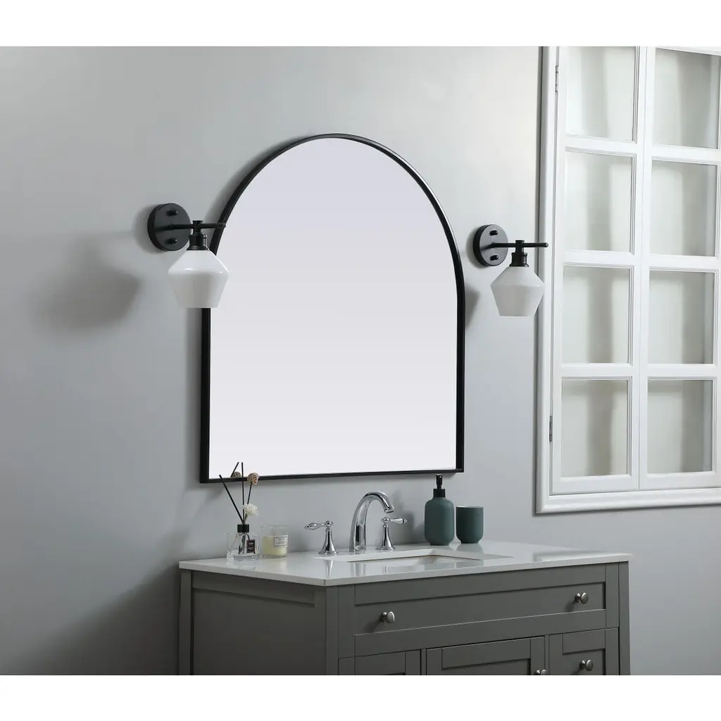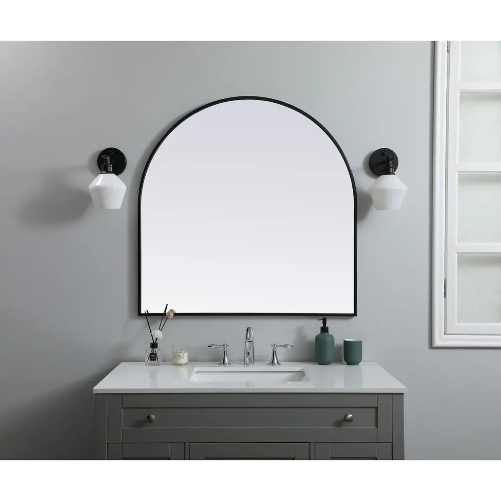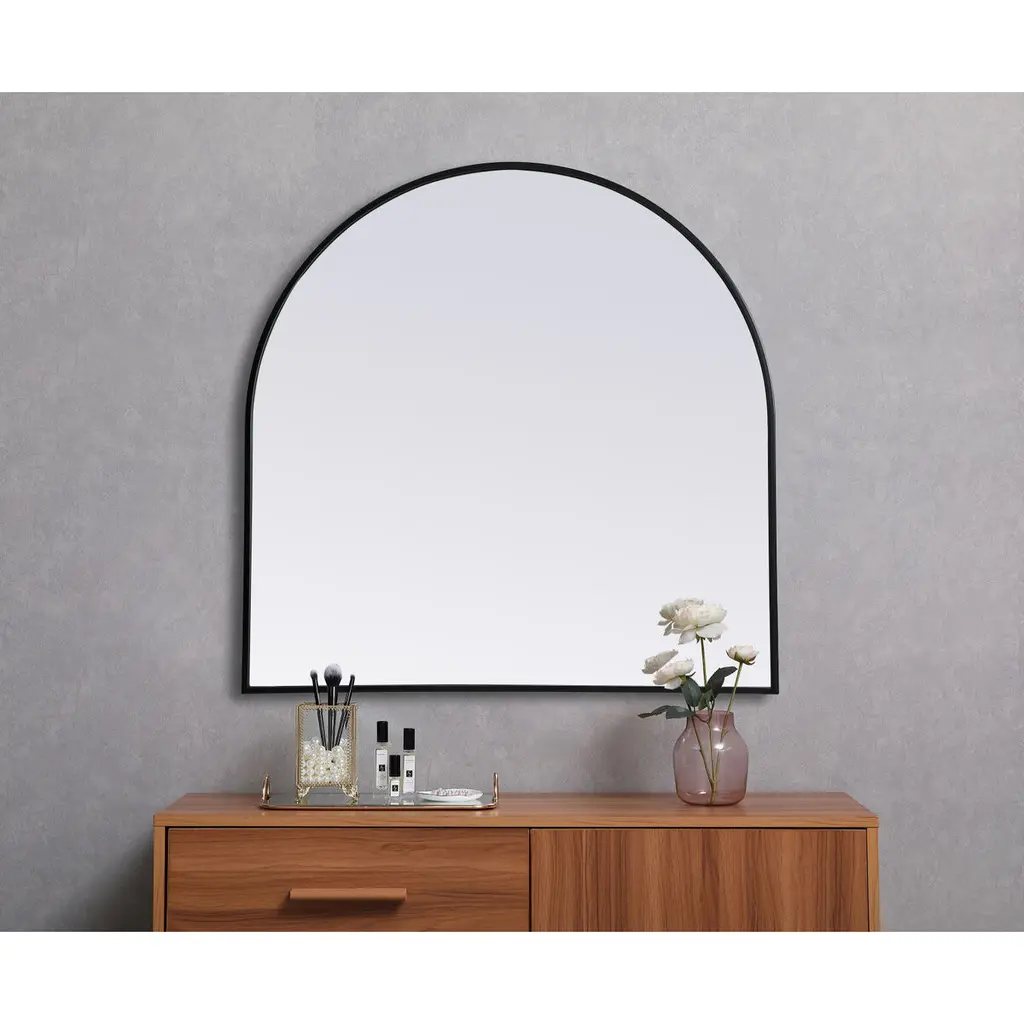 Instantly open up any space in your home with this minimalist wall-mounted mirror. Crafted of metal, this mirror strikes a round silhouette. Its slender, clean-lined frame sports a classic finish, while the glass mirror within features a flat, for a brilliant reflection, letting the light bounce off to expand your space. Designed in an arch shape, this metal-frame mirror showcases in the three available satin finishes in black, brass, or silver. Mount this work of art in any room of your choice for added visual impact.