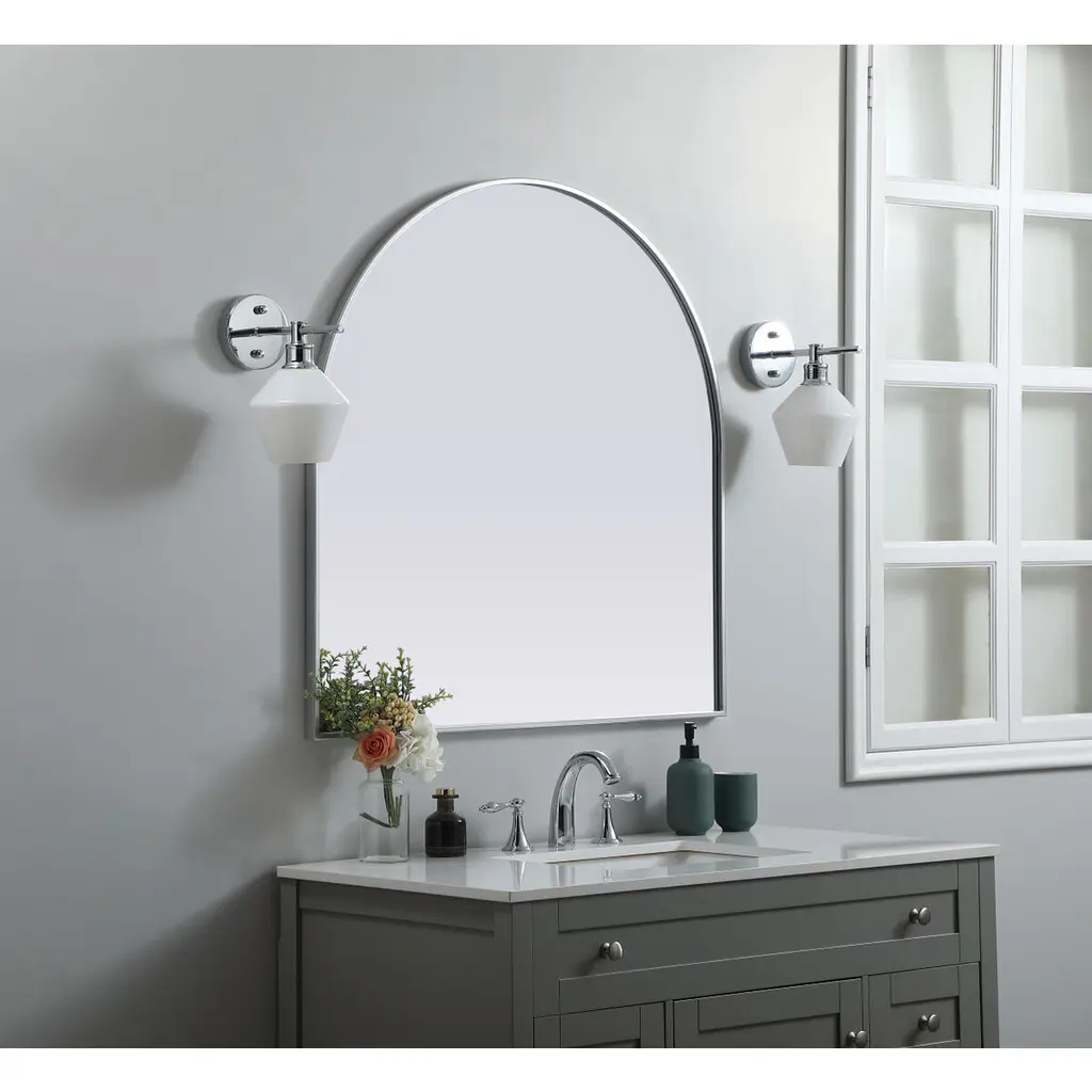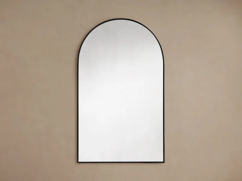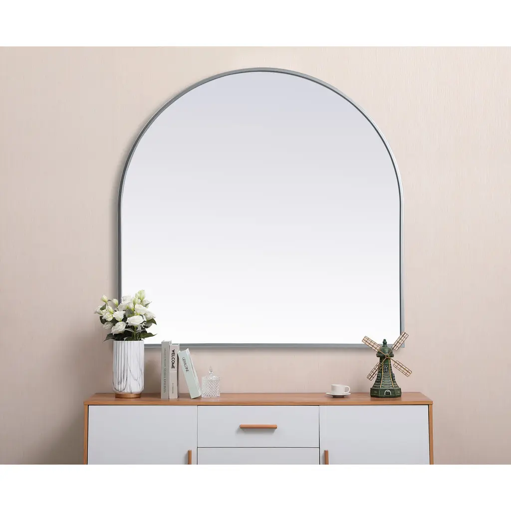 Instantly open up any space in your home with this minimalist wall-mounted mirror. Crafted of metal, this mirror strikes a round silhouette. Its slender, clean-lined frame sports a classic finish, while the glass mirror within features a flat, for a brilliant reflection, letting the light bounce off to expand your space. Designed in an arch shape, this metal-frame mirror showcases in the three available satin finishes in black, brass, or silver. Mount this work of art in any room of your choice for added visual impact.
