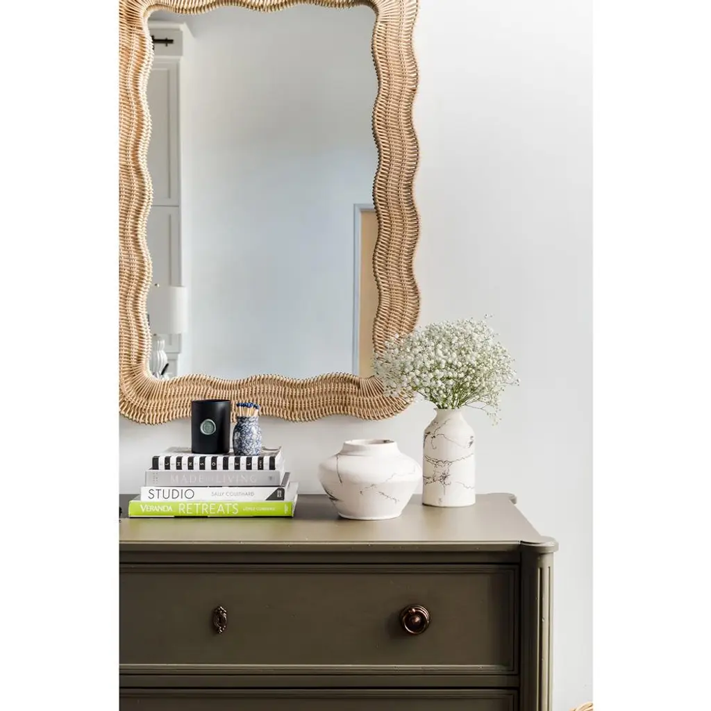 Bailey Coastal Beach Natural Rattan Scalloped Frame Wall Mirror