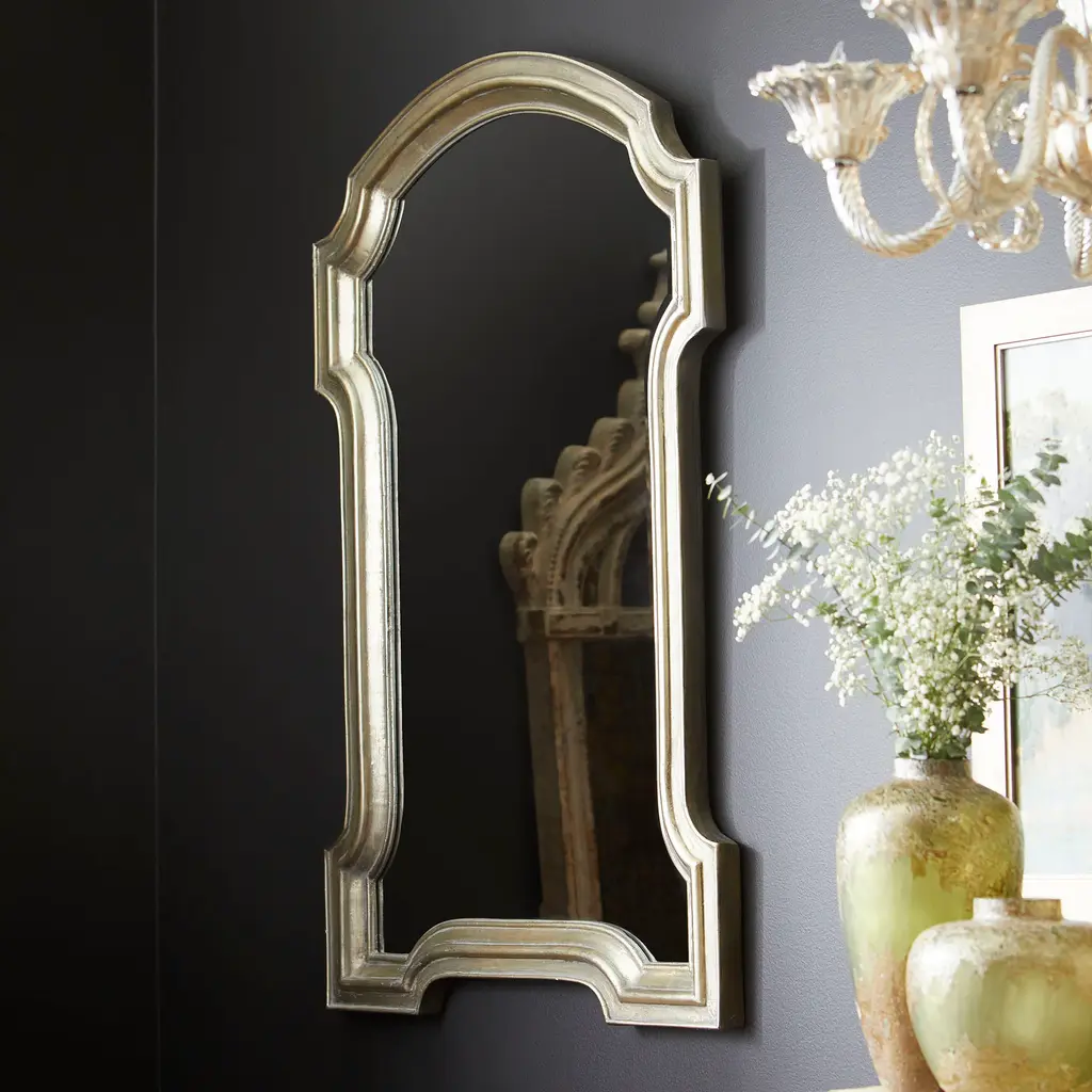 With curves reminiscent of Victorian-inspired design, this silver oxide mirror reflects the unexpected. Great for any hallway, clean lines in a sleek finish add a touch of tradition.