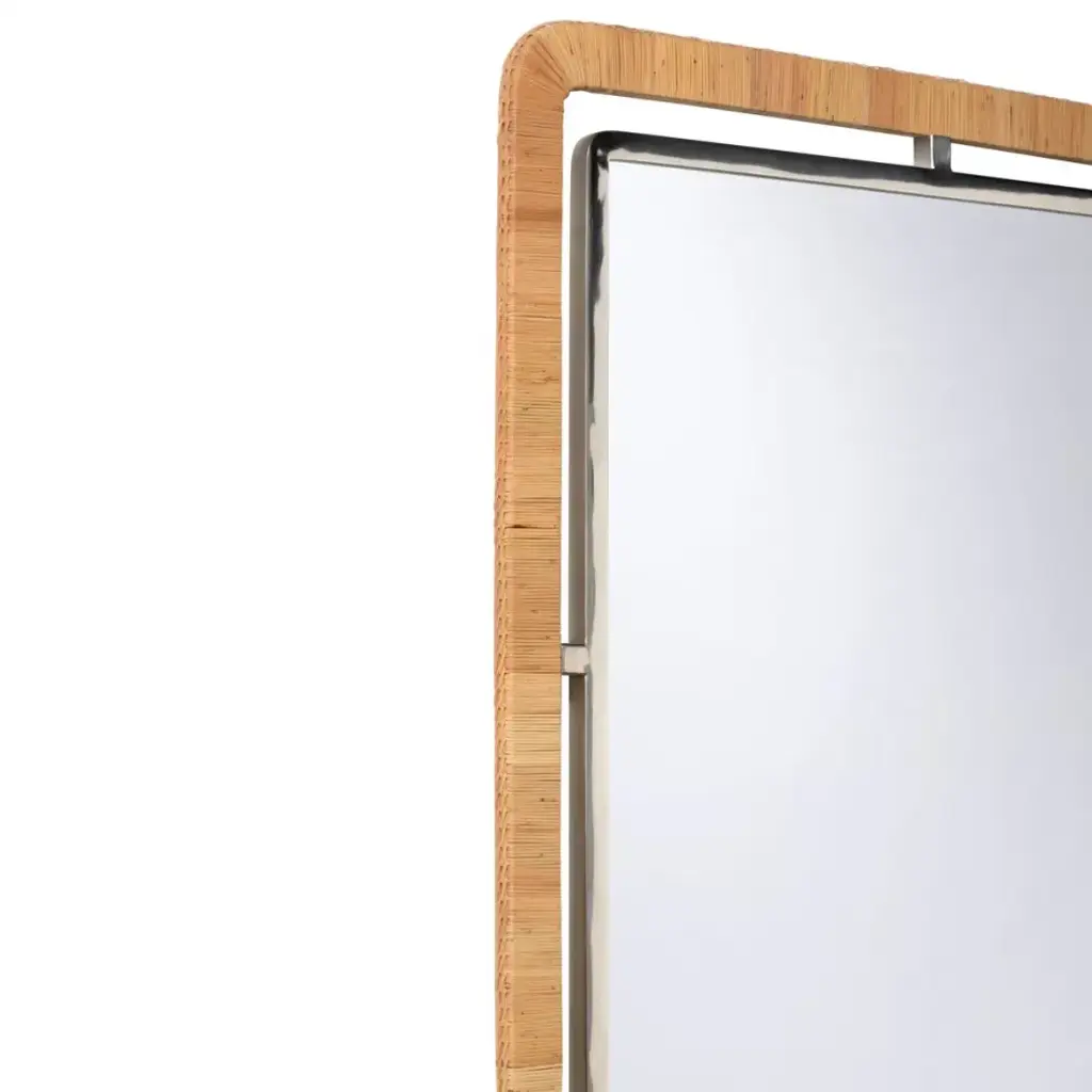 This mirror combines sleek sophistication with natural charm, featuring a polished nickel interior frame that adds a modern, reflective edge, beautifully wrapped in a textured raffia outer frame. The contrast of refined metal and organic fibers creates a balanced, contemporary look that’s both stylish and earthy.