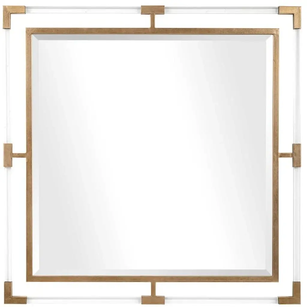 Make a substantial impact over a console or sideboard with this hefty square beveled mirror. Framed in gold leaf iron and clear acrylic for a soothing effect.