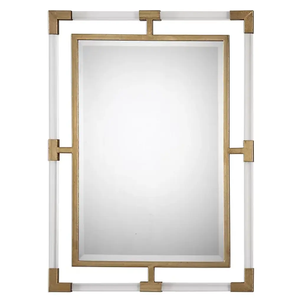 The Balkan Wall Mirror from Uttermost brings a striking modern vibe to any space. Designed by Grace Feyock, it’s a standout piece for ultra-modern interiors. Featuring forged iron corners paired with suspended clear acrylic bars, it creates a bold and contemporary aesthetic. The generously beveled mirror edge adds depth and dimension, and its versatile design allows for horizontal or vertical mounting.