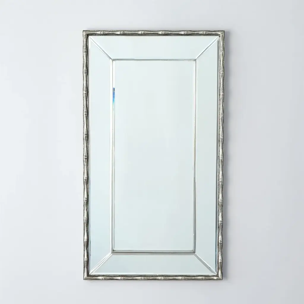 MAGNIFICIENT BAMBOO INSPIRED RECTANGULAR METAL MIRROR WITH GOLD FINISH. DESIGNED BY BRADSHAW ORRELL.