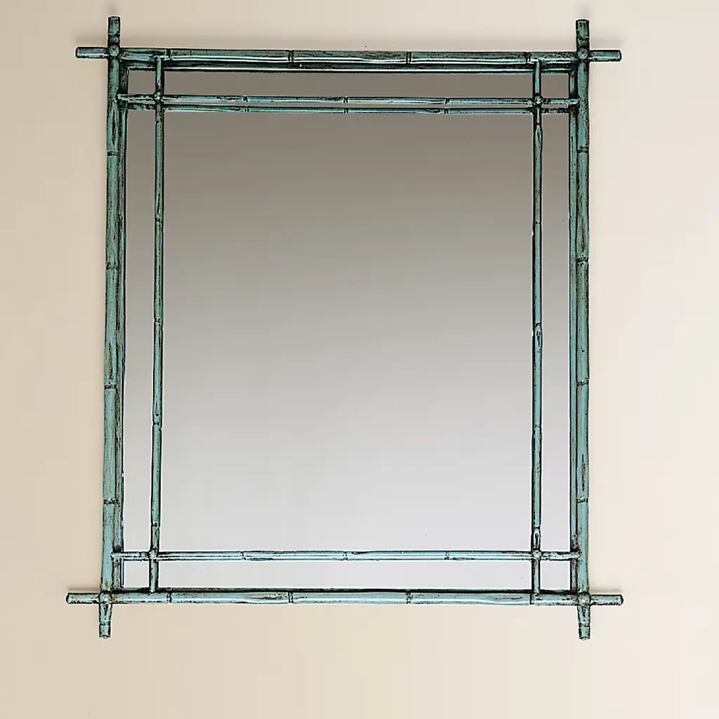 Timeless and elegant, this mirror will look stunning in any interior. A double decorative element divides the rectangular reflective surface while enclosing it in a delicate frame crafted of forged iron in the shape of slender bamboo sticks. Used to enliven a contemporary entryway, or to add a functional and decorative accent to an eclectic living room or classic powder room, this mirror will be an eye-catching piece to cherish.