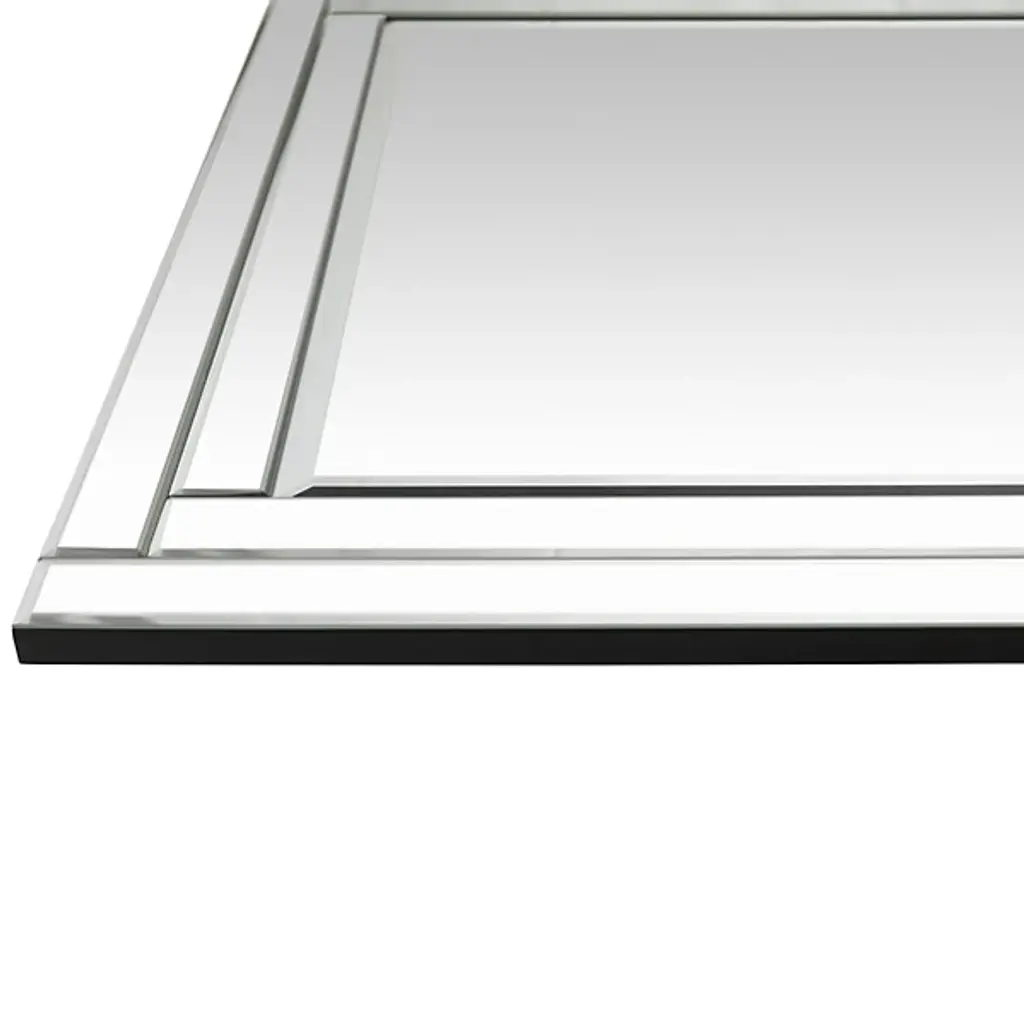 Enhance your home decor with the Bancroft Accent Mirror from Surya. This tall rectangular mirror features a beautifully crafted wood frame backing with intersecting angular elements of mirrored glass that create visual intrigue. The mirror can be mounted vertically or horizontally, while the bands of mirror framing use beveled edges to stand out from the central reflector.