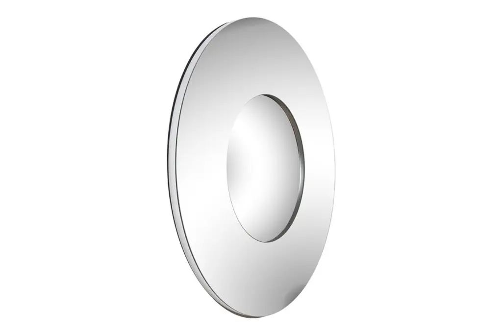 Make an incredible, ultra contemporary style statement with the sleek Bangkok Mirror. This brilliant, geometric piece is a celebration of circles. A smooth round mirror sits in the center of a wide, large outer mirror frame in the same shape. The dynamic team of Jonathan Wilner and Paul De Bellefeuille designed the stunning Bangkok Mirror to complement your existing modern home or office dcor.Frame Exterior: 40" x 40"