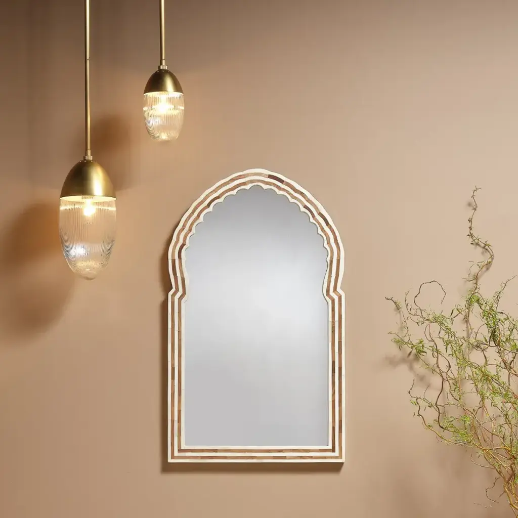 As glamorous as its namesake, this intricately embellished mirror is a little exotic and a lot glamorous, with a design inspired by 1930’s Hollywood. It features an expertly hand carved inlay of bone and wood, in a take on the traditional pishtaq arch.. Finely crafted, this piece is set to stay in the family for generations.