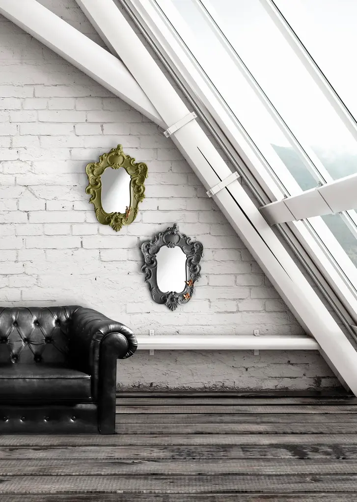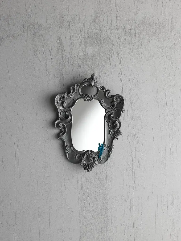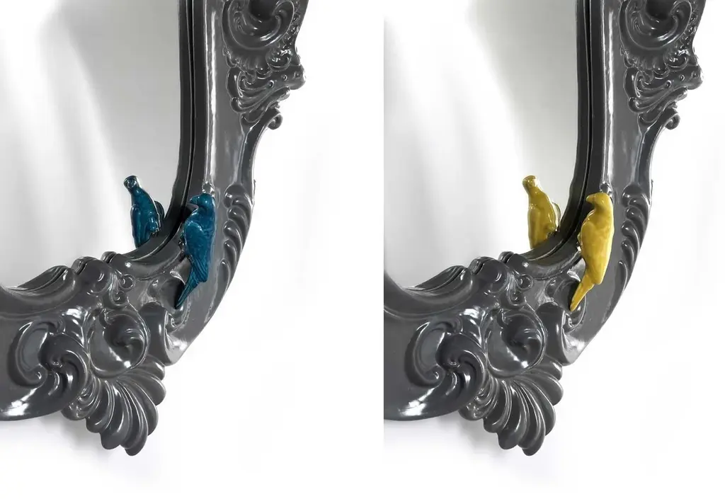 Baroque Mirror With Magnetic Parrot In Gray From Rebirth Ceramics