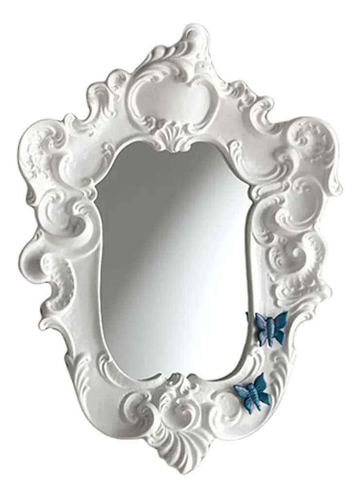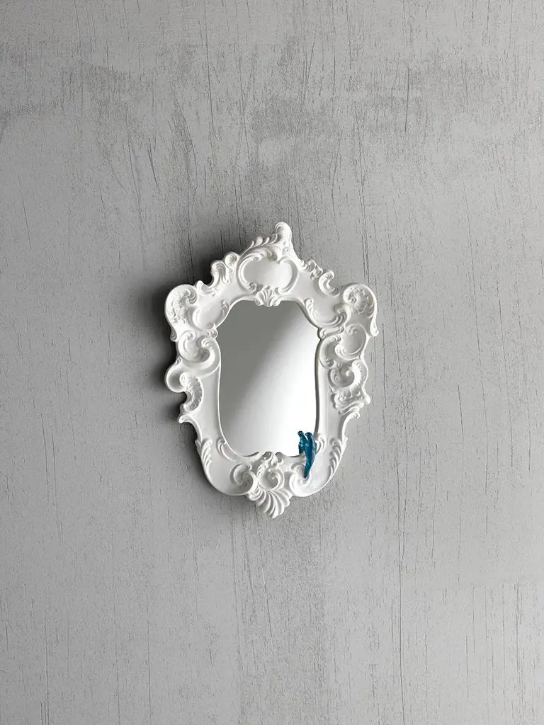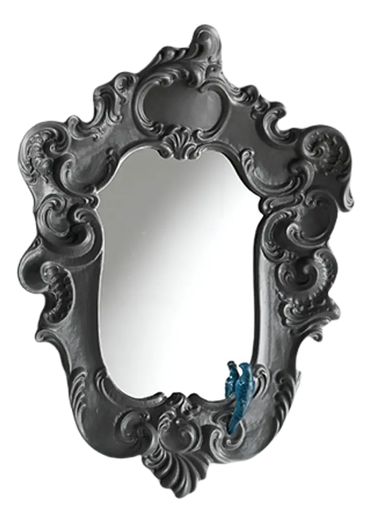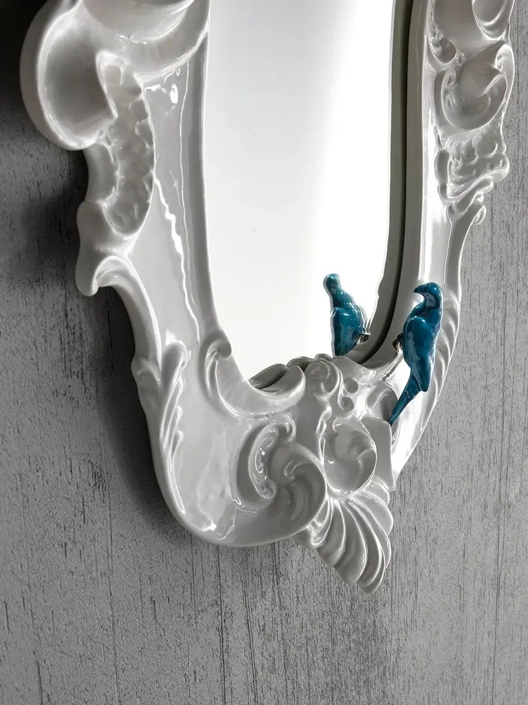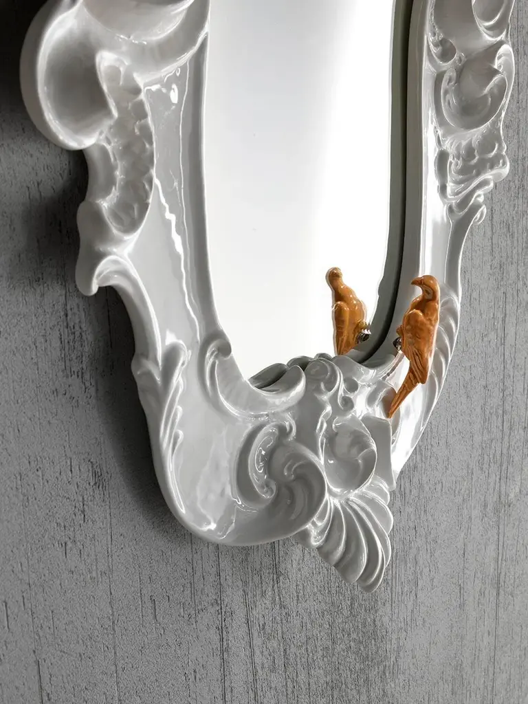 Baroque Mirror With Magnetic Parrot In White From Rebirth Ceramics