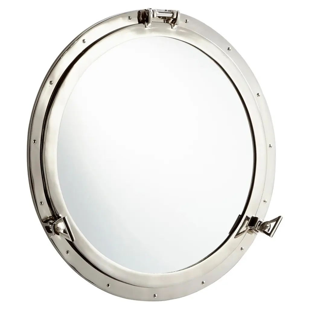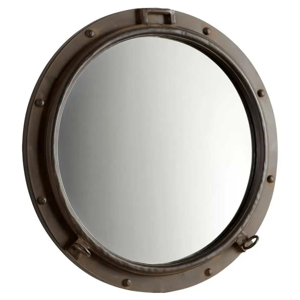 This chime hoop reclaimed barrel inspired iron and wood mirror feels timeless. With its weather bronze finish and burnished gold rivet details are sensational. Add vintage vintner touches to a master bedroom. The Barrel Mirror by Cyan. Cyan Designs combines unique designs with high-end materials to bring you the very best home decor in the business. When you order a product engineered and manufactured by Cyan Designs, you''re guaranteed to get a product that is built to last for years and years to come. This product will come in ship-safe packaging materials and will sure to impress!DimensionsDepth: 29. 5 in. Width: 29. 5 in. Height: 3. 75 in. Weight: 20. 8 lbs.