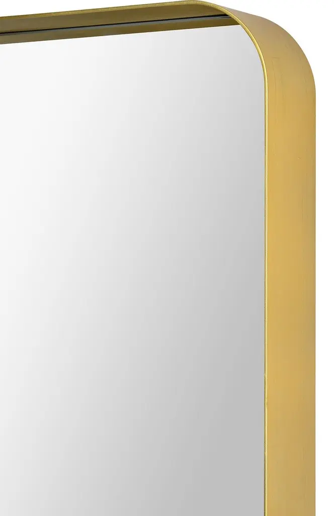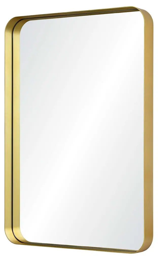 Designed with gently rounded corners and an iron frame with a brushed antiqued gold finish, this rectangular mirror accents any room with simple, contemporary style.