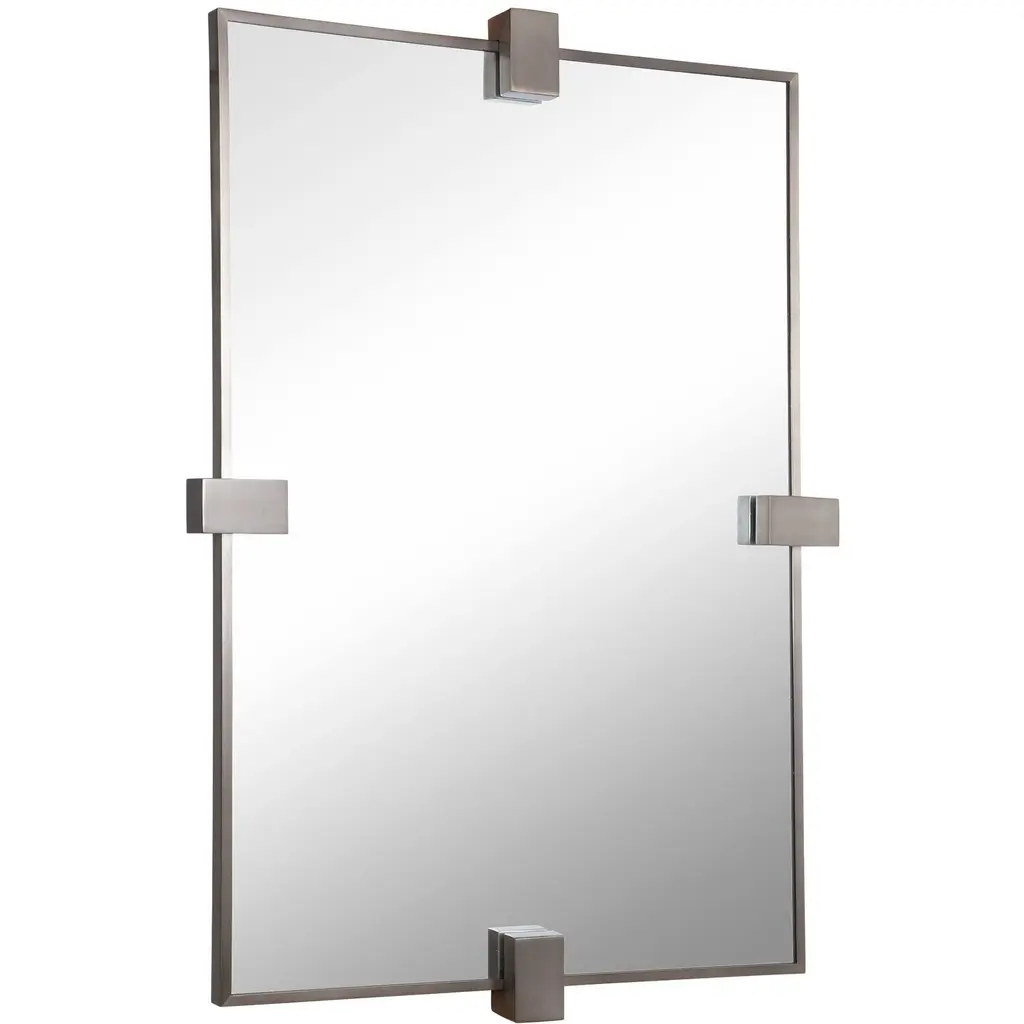 Adding A Touch Of Sophistication And Modern Flair To Any Space, The Bateau Mirror Showcases A Sleek, Contemporary Design Accented With Decorative Clips And Finished In A Plated Brushed Gun Metal. May Be Hung Horizontal Or Vertical.
