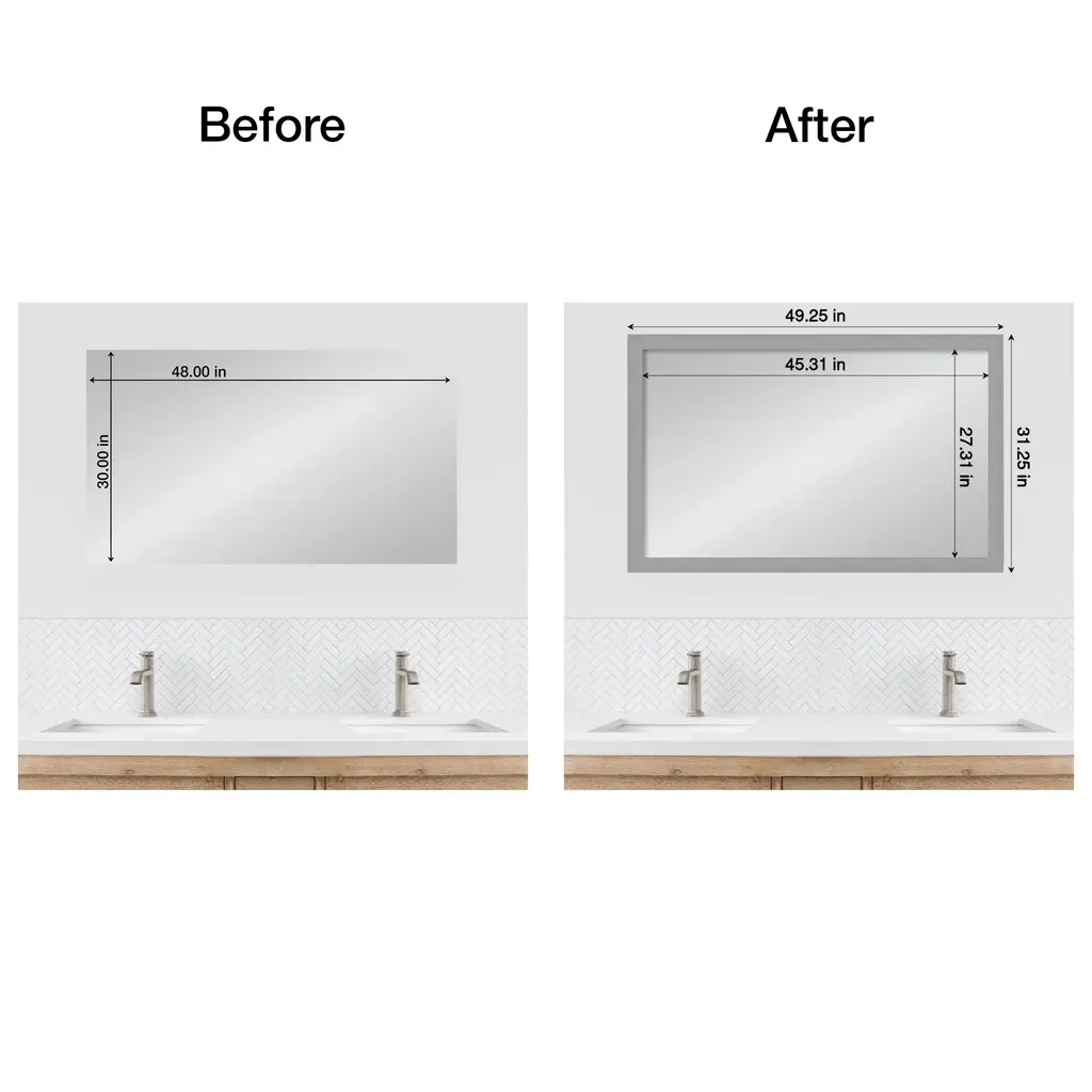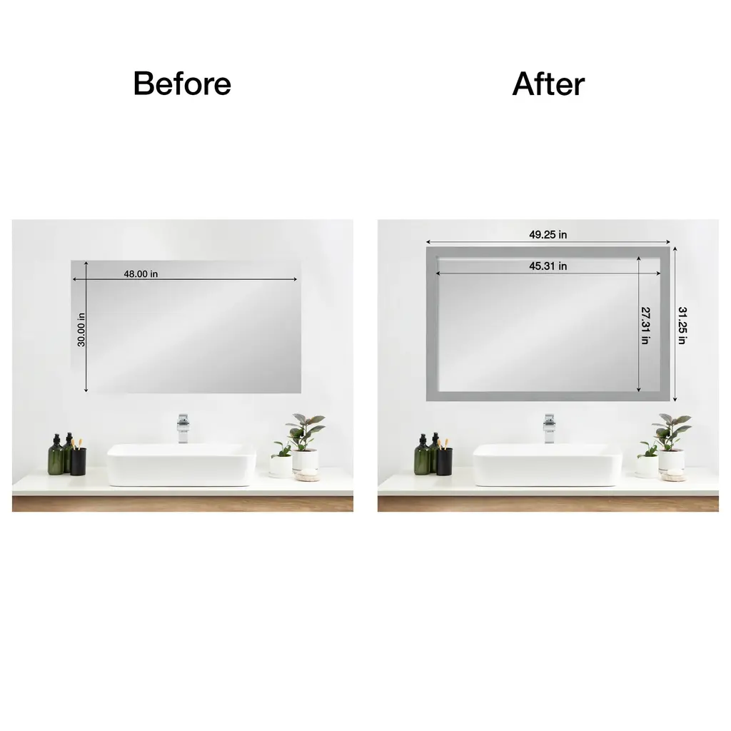 Bathroom Mirror Frame Border Kit, Brushed Nickel Trim, For 48x30 Mirror