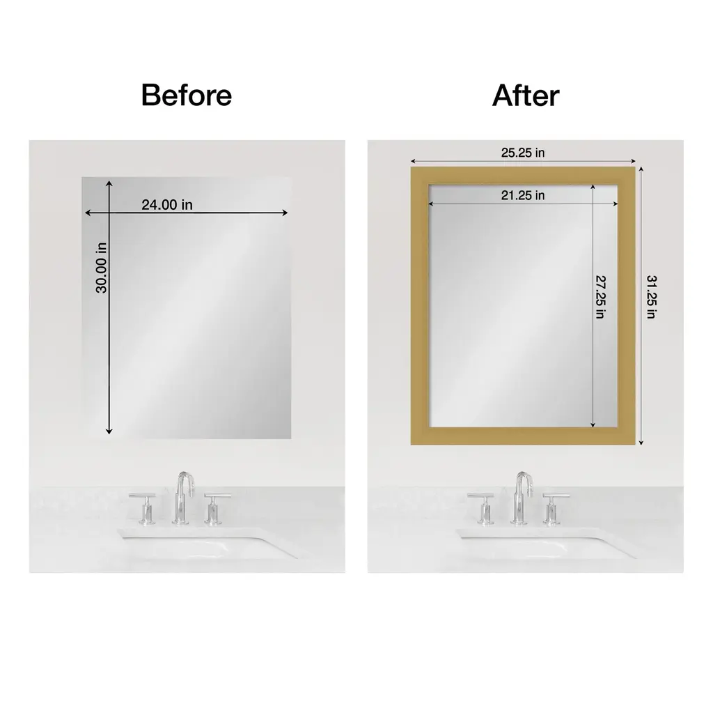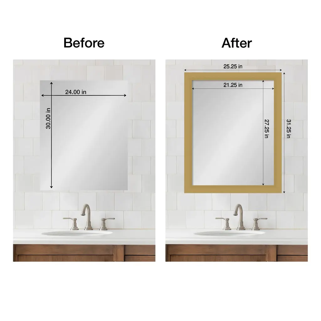 Bathroom Mirror Frame Border Kit, Grace Brushed Gold, For 24x30 Mirror