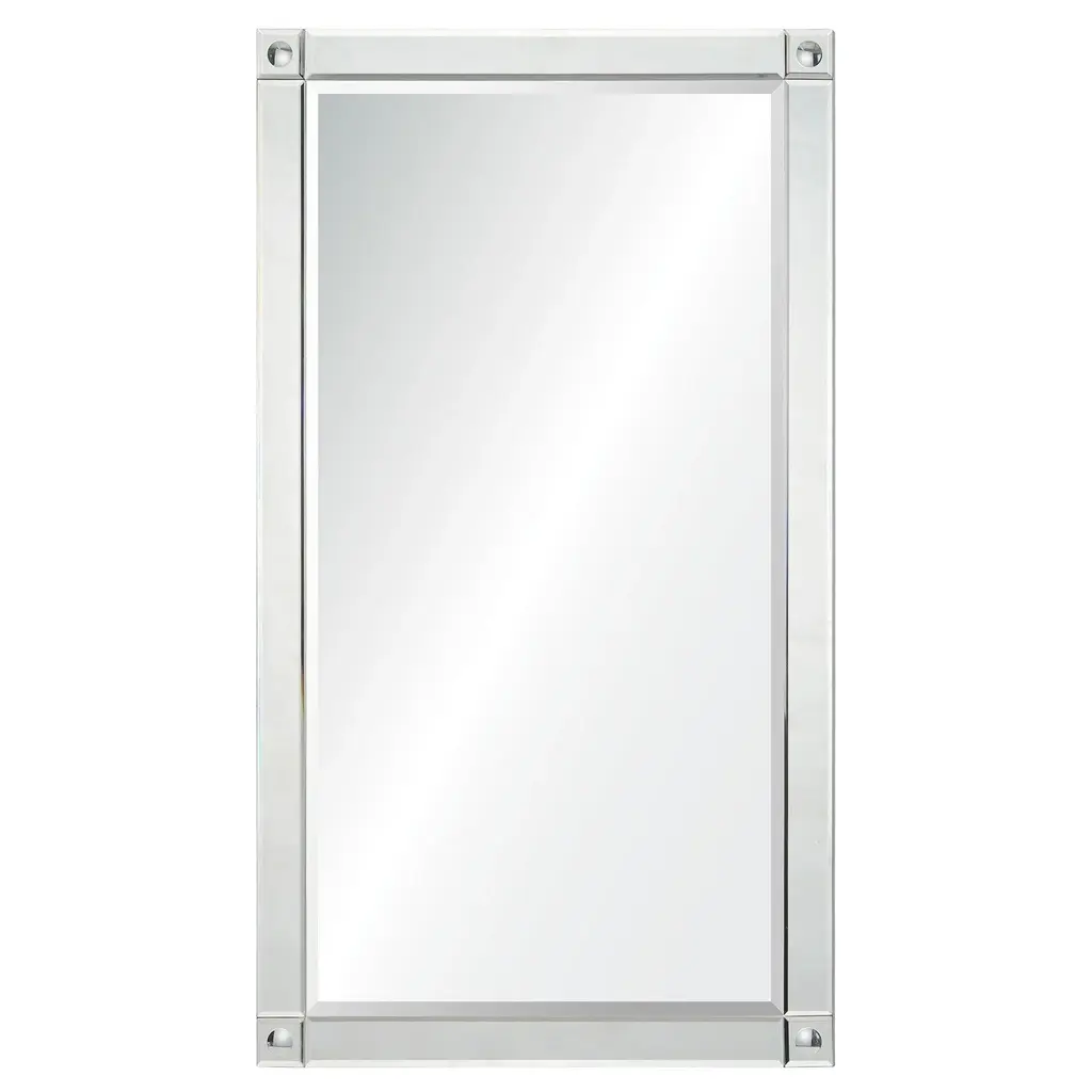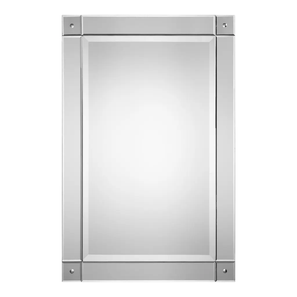 This contemporary design features a dimensional beveled-mirror "step" frame that is staggered around the beveled center mirror. With its sleek look and clean lines this mirror is a great look that surely earns the "wow" factor. This piece would look amazing in a Contemporary-style home. This wall mirror makes a grand statement in a living room, bedroom or entryway.Format: VerticalFrame Material: MirrorFrame Finish: All glassHanging Hardware Included?: YesHanging Direction: Horizontally and VerticallyFramedHardware Included: Yes