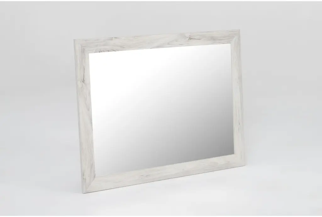 Baylie Natural White Wood Glass 31" Mirror | Wall | Rectangle | Made In The Usa