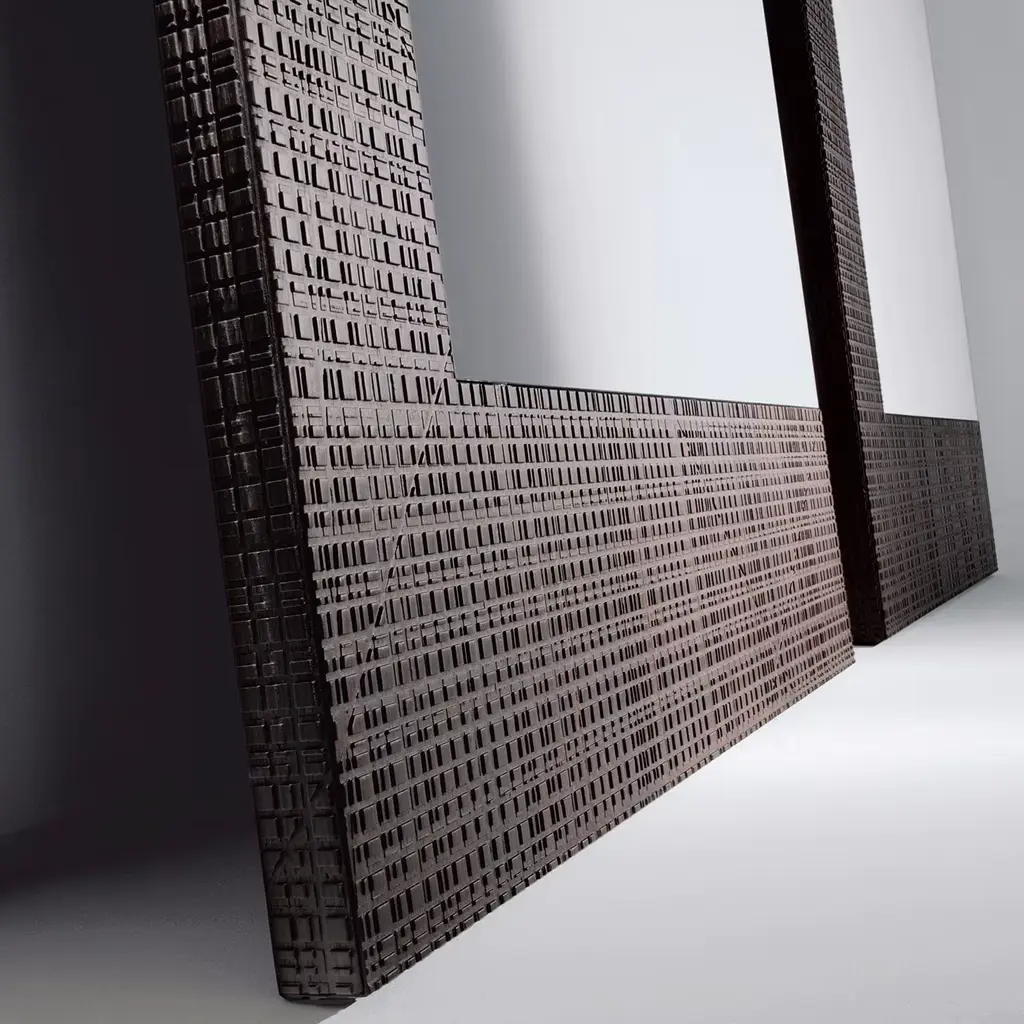 A splendid furnishing accessory, the BD 02 Maxima Mirror features a wooden frame with carved detail on the front panel. This version is in carved wenge and is also available in other wood tones and in a variety of sizes upon request. A marvellous addition to any large wall space, the mirror measures 100 x 200 cm.