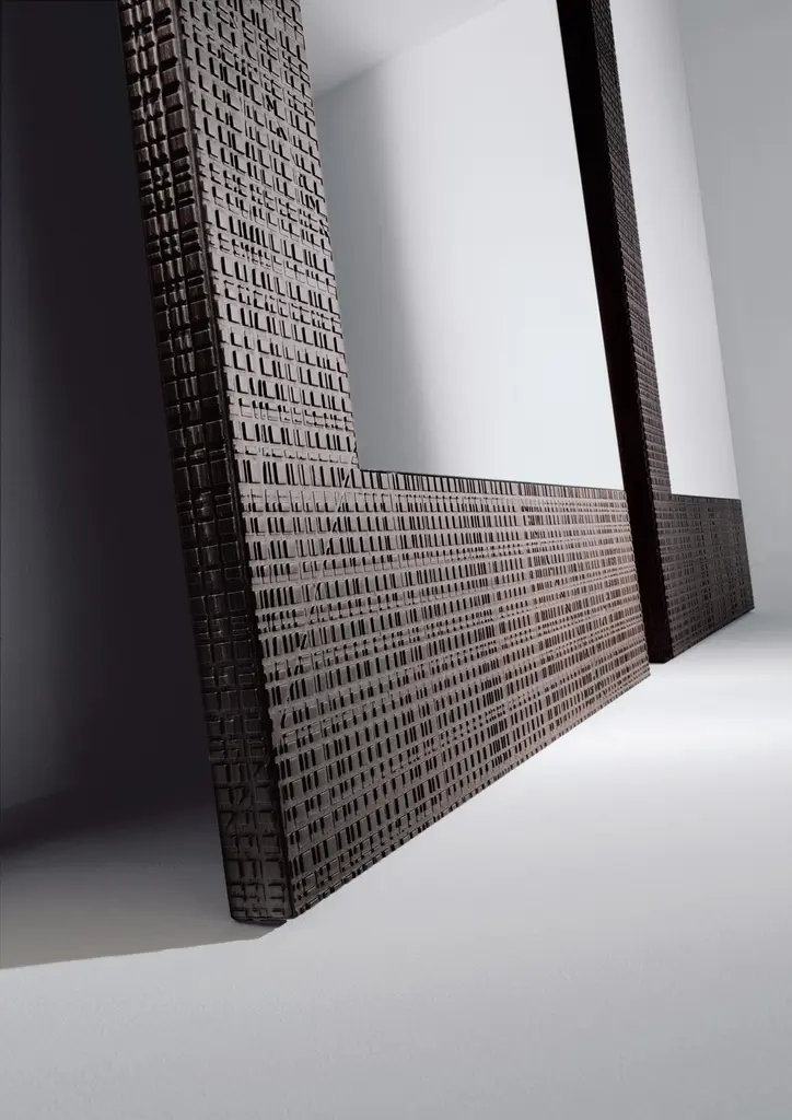 BD 02 Mirror by LaurameroniDimensions: W 100 x D 5 x H 200 cmMaterials: Rosewood with Maxima Carving. Rectangular Mirror with Maxima carved wooden frame and frontal panel in rosewood.Laurameroni:The ability of craftsmen from the Brianza area has fascinated them from a young age. Over time, this craftsmanship has evolved and developed into industrial production. They wanted to invite architects to rediscover and exploit the unique skills of master craftsmen. Their aim was to create products using the most sophisticated equipment and the finest materials, designed for ambitious and refined individuals seeking items where differentiation and uniqueness prevail.All our lamps can be wired according to each country. If sold to the USA it will be wired for the USA for instance.