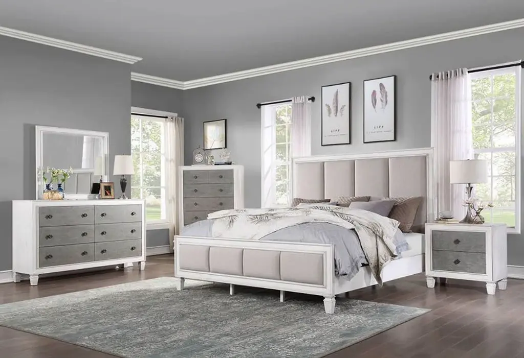 BD00662 - Mirror, Rustic Gray & Weathered White Finish - Katiaacme Mirror Finish Rustic Gray & White Finish, PRODUCT DIMENSION 42" L X 2" D X 38" HModel No : BD00662Brand : Acme FurnitureUPC : 840412309748MirrorColor : Rustic Gray & Weathered White FinishKatiaBox Spring RequiredPadded HB & FBFull Extension Drawer GlideSide Metal Drawer GlideEnglish Front & Back Dovetail DrawerFelt Lined on Top DrawerMirror BeveledMaterial : Wood, MirrorMade in USACatalog Finish: Rustic Gray & Weathered White FinishCatalog Size: 42''''L x 38''''H