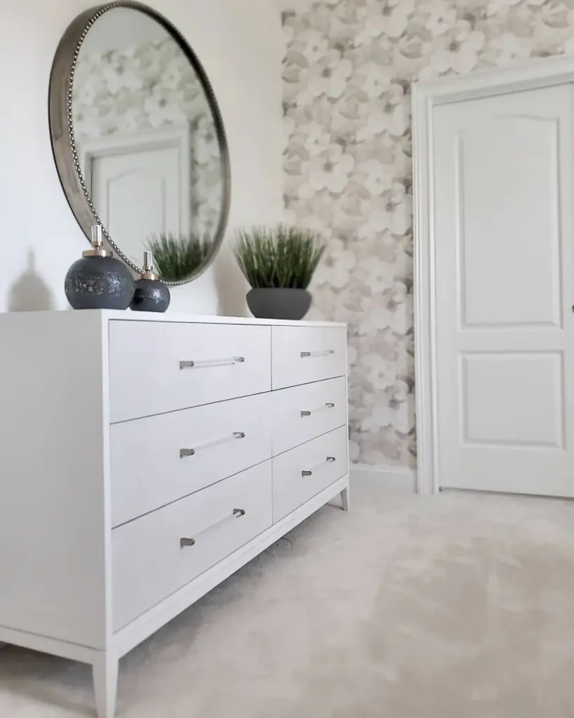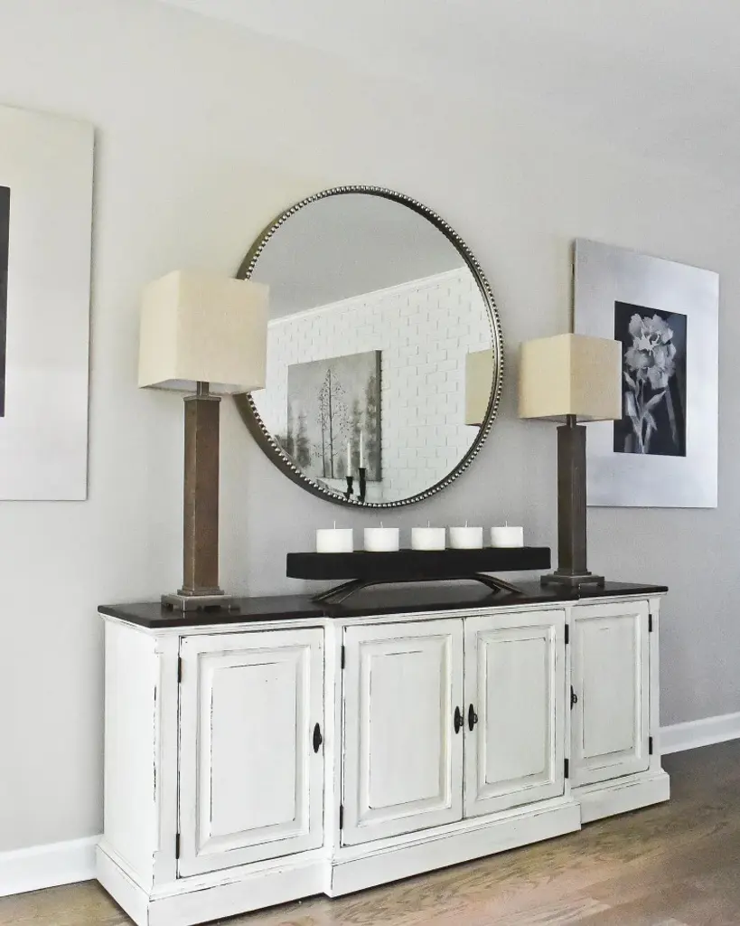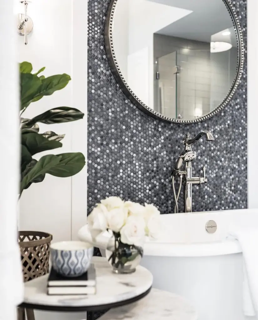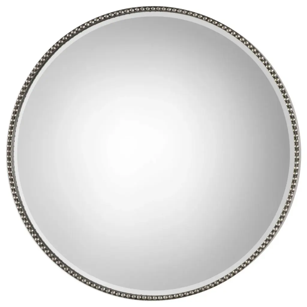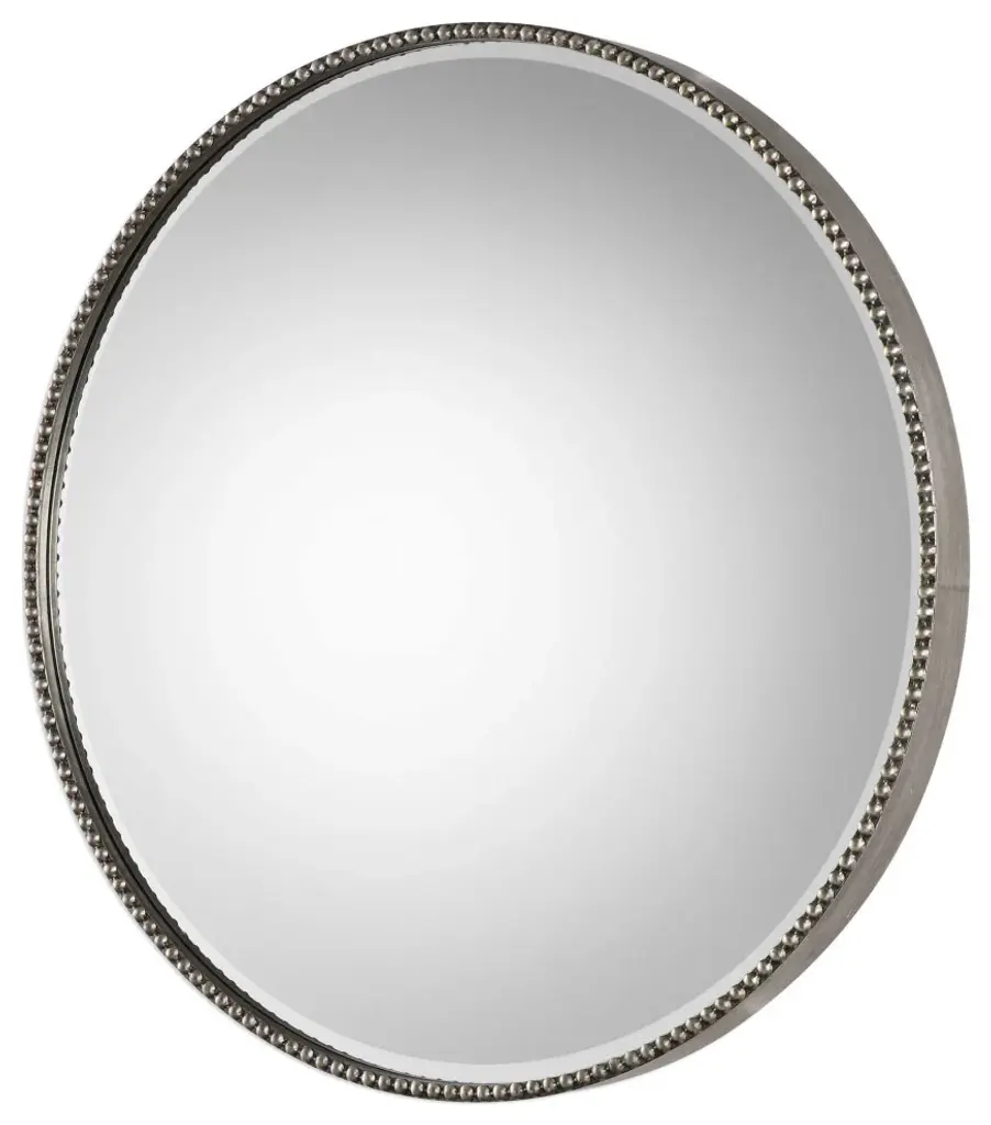 Beaded Round Silver Wall Mirror, Vanity Minimalist Simple