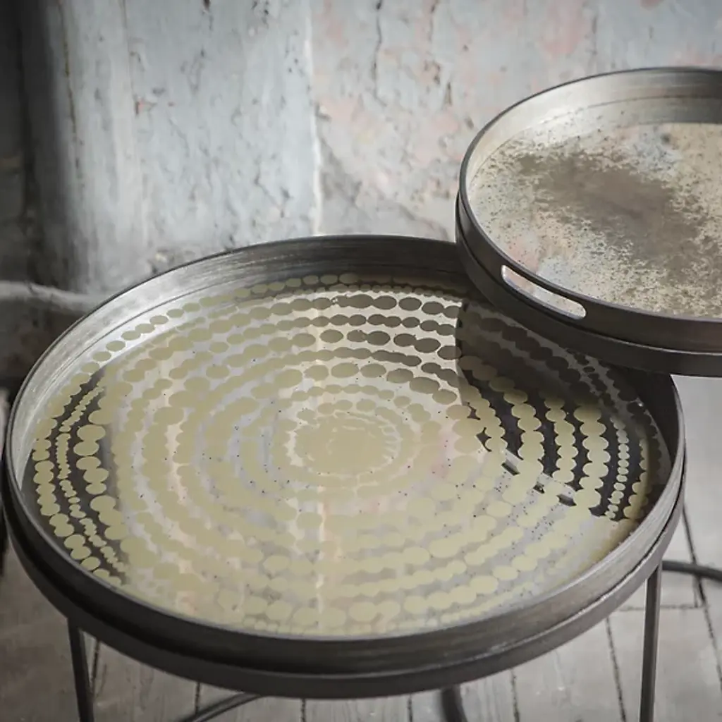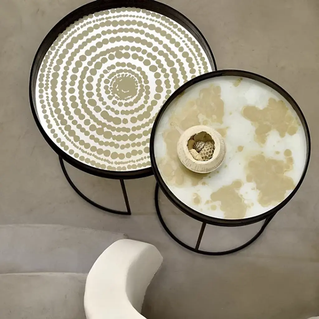The Beads Mirror Tray from Ethnicraft blends artisanal craftsmanship and modern elegance. This mirror tray boasts a circular design with captivating bead patterning. Meticulously crafted, this piece exudes style, fitting effortlessly into contemporary interiors. It features fine glass and a wooden rim, adding both durability and charm to its design.