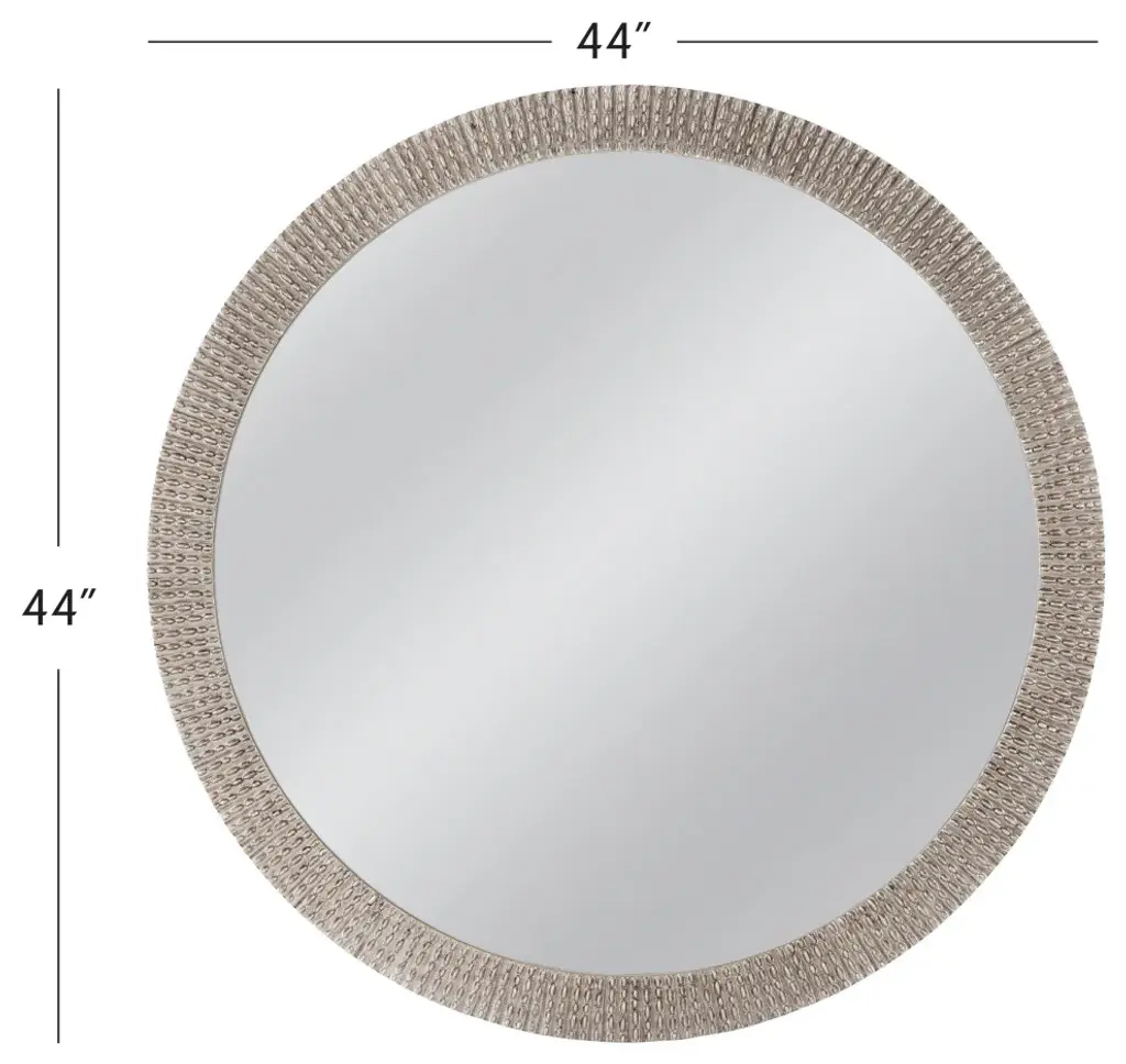 The Beatrice Wall Mirror showcases a round textured patterned frame, adorned with an antique silver leaf finish. Its intricate design adds sophistication to any space. With meticulous craftsmanship, this mirror elevates your decor with timeless elegance.Features:Traditional style with an antique silver finishRound design with textured frameMeticulously crafted for timeless charm and sophisticationSeamlessly blends traditional and glam stylesFor over a century, Bassett Mirror has been synonymous with style and quality, transforming homes with its sophisticated and timeless designs. With a wide-ranging collection of furniture, lighting, mirrors, and art, Bassett Mirror seamlessly blends modern style with classic appeal. From rustic modern to luxe glam, each piece is thoughtfully crafted to inspire and elevate any space. Committed to exceptional value and customer care, Bassett Mirror makes it easy for homeowners to create beautiful, personalized interiors with confidence.