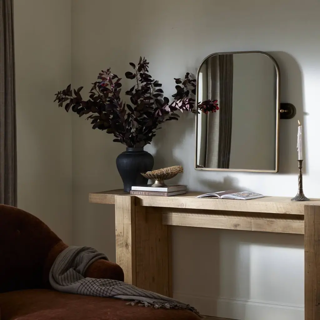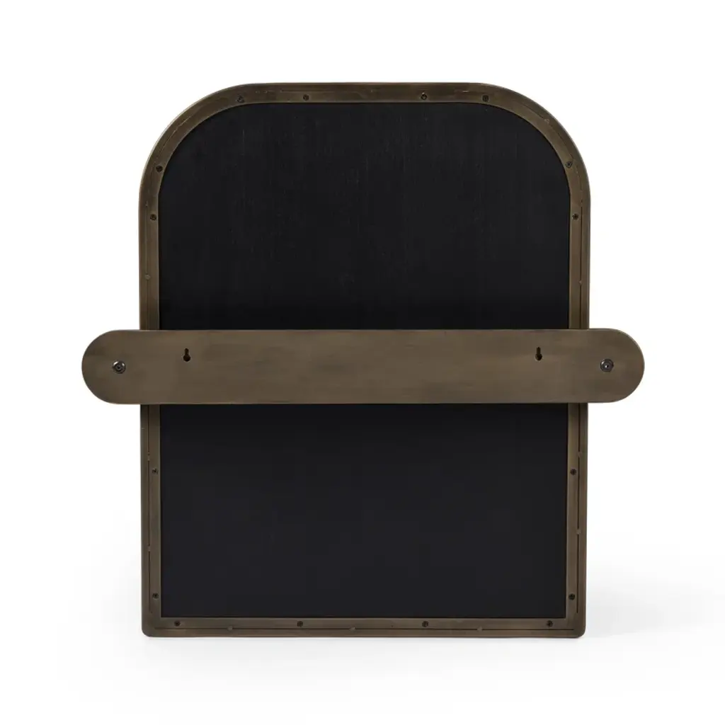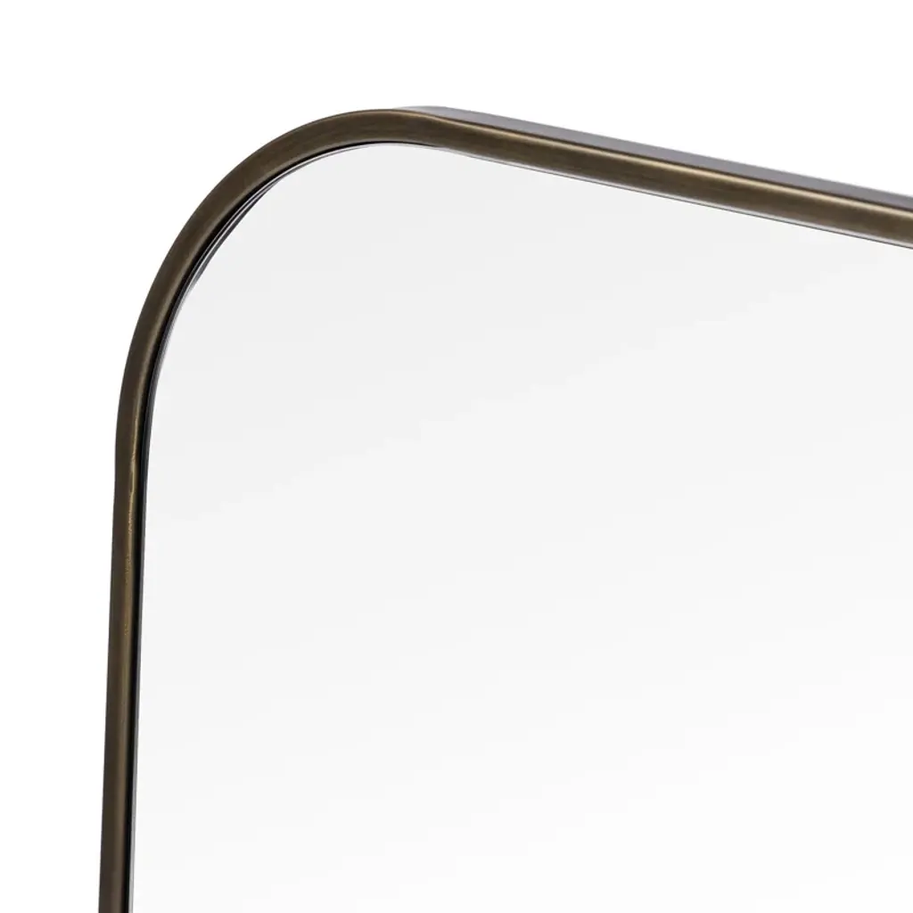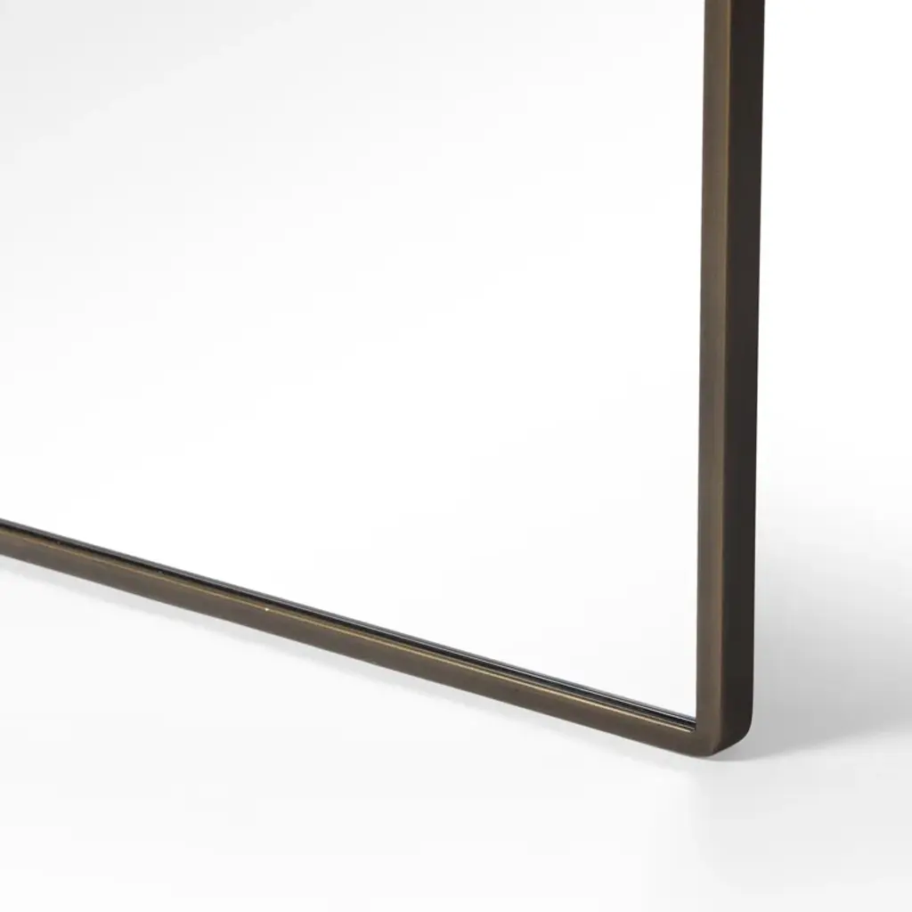 A design collaboration by Amber Lewis and Four Hands.Aged iron frames this bath-safe wall mirror. Mounted on vertical pivots and finished with pill-shaped wall mount and ball finial detailing.