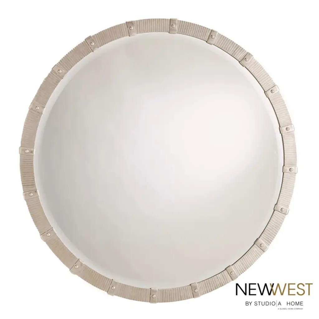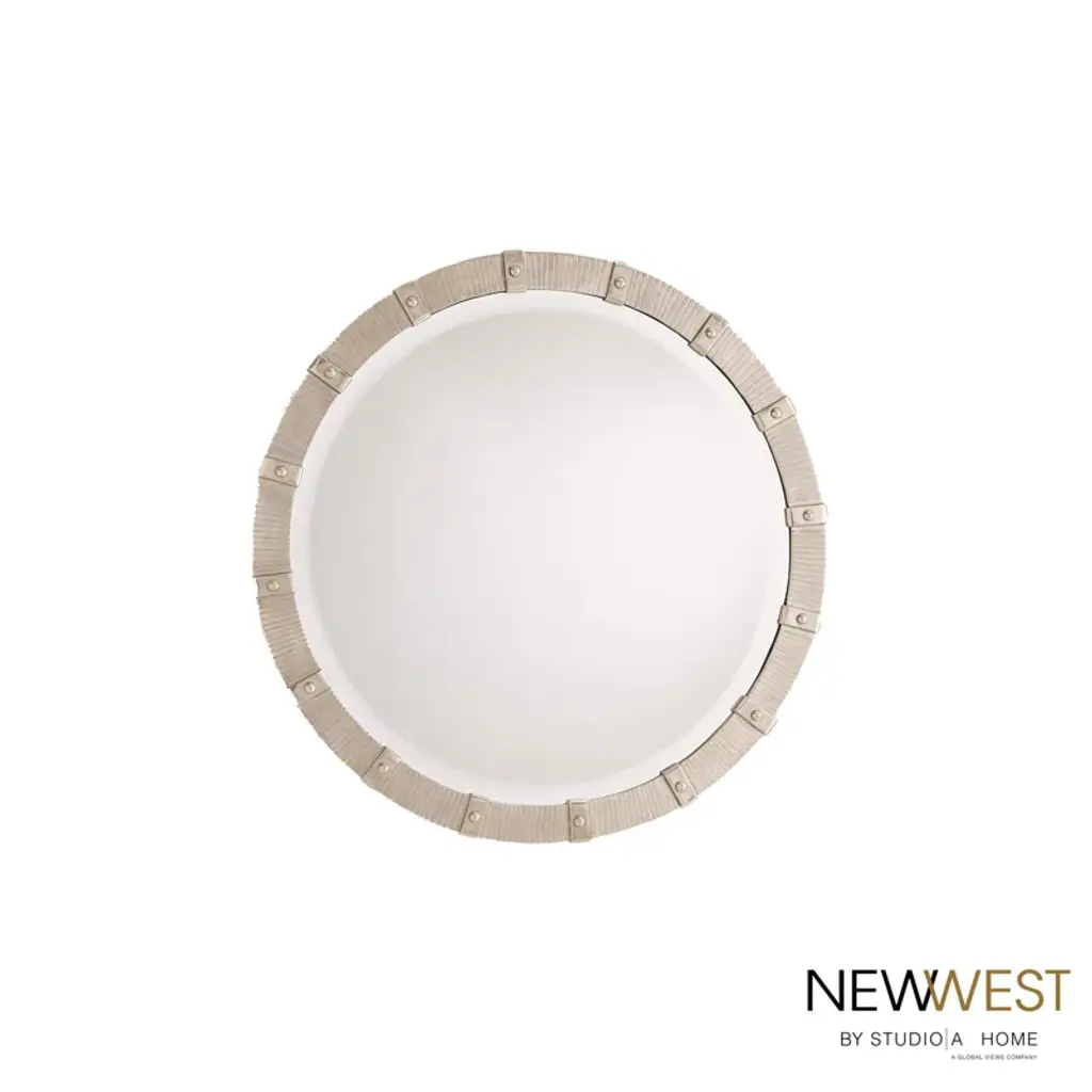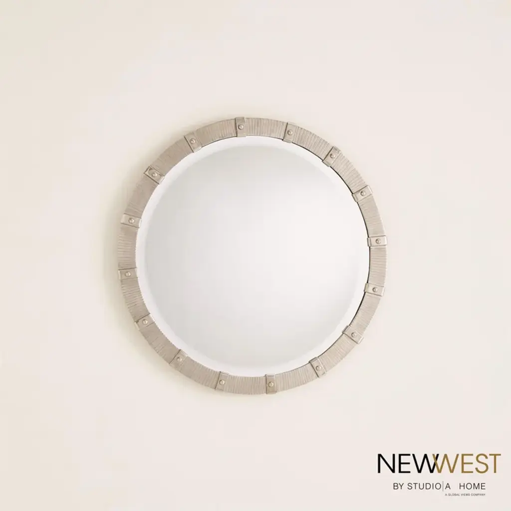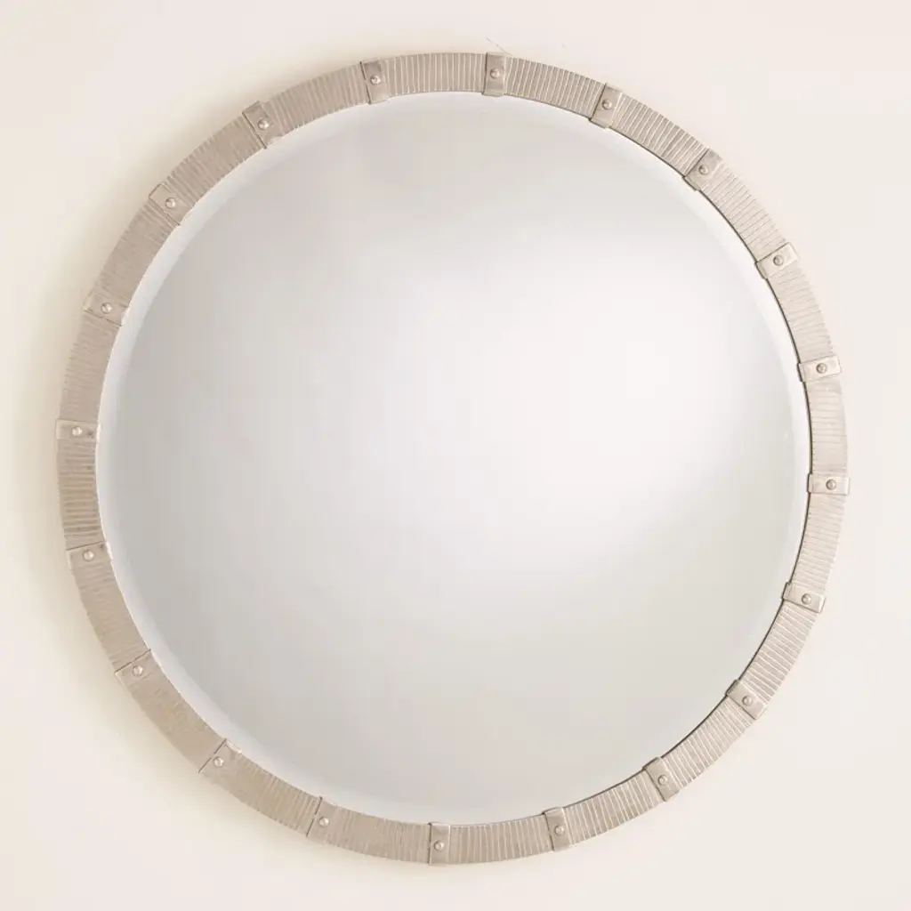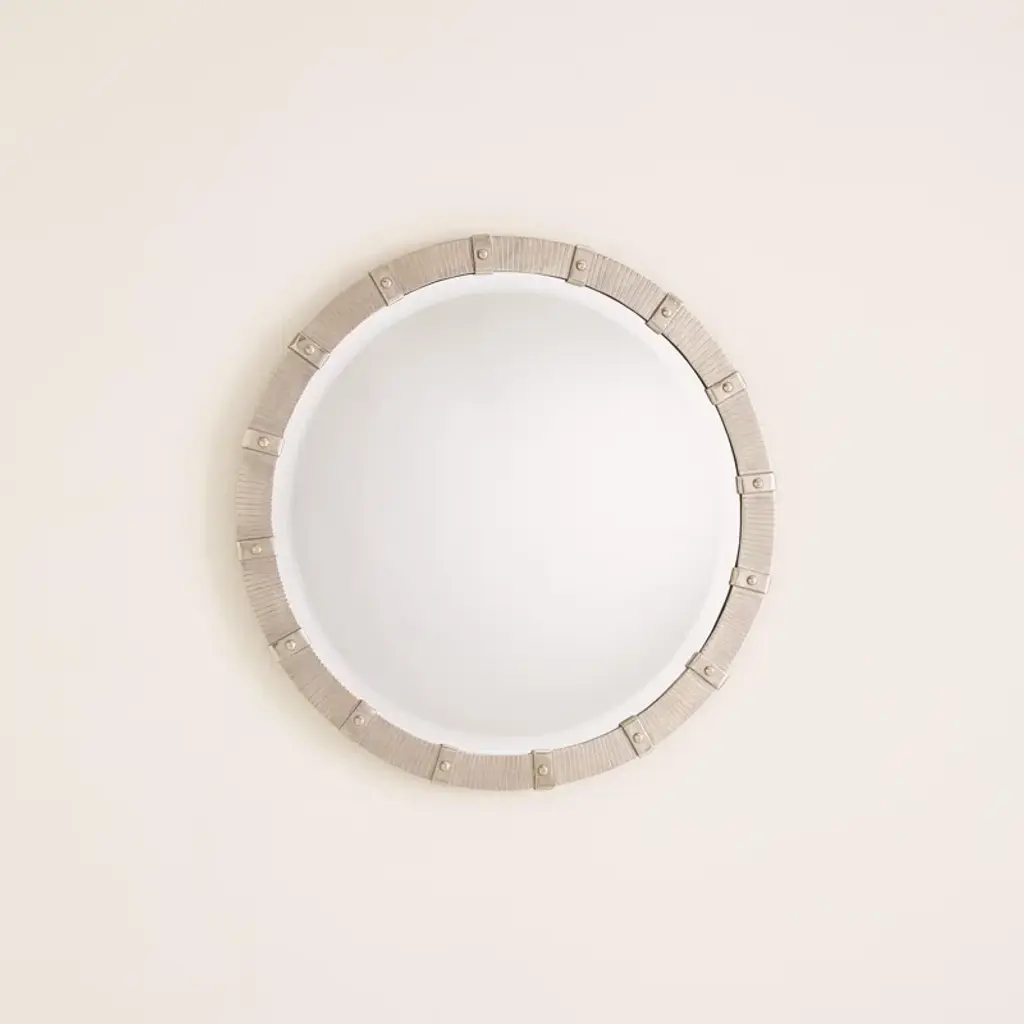 Set to embellish your interior, the round mirror Beaumont features a sleek metal frame in a bronze finish that adds a flair of glam to any room. Its paneled design segments the beveled mirror glass, breaking up the reflective plane and enhancing the traditional look.