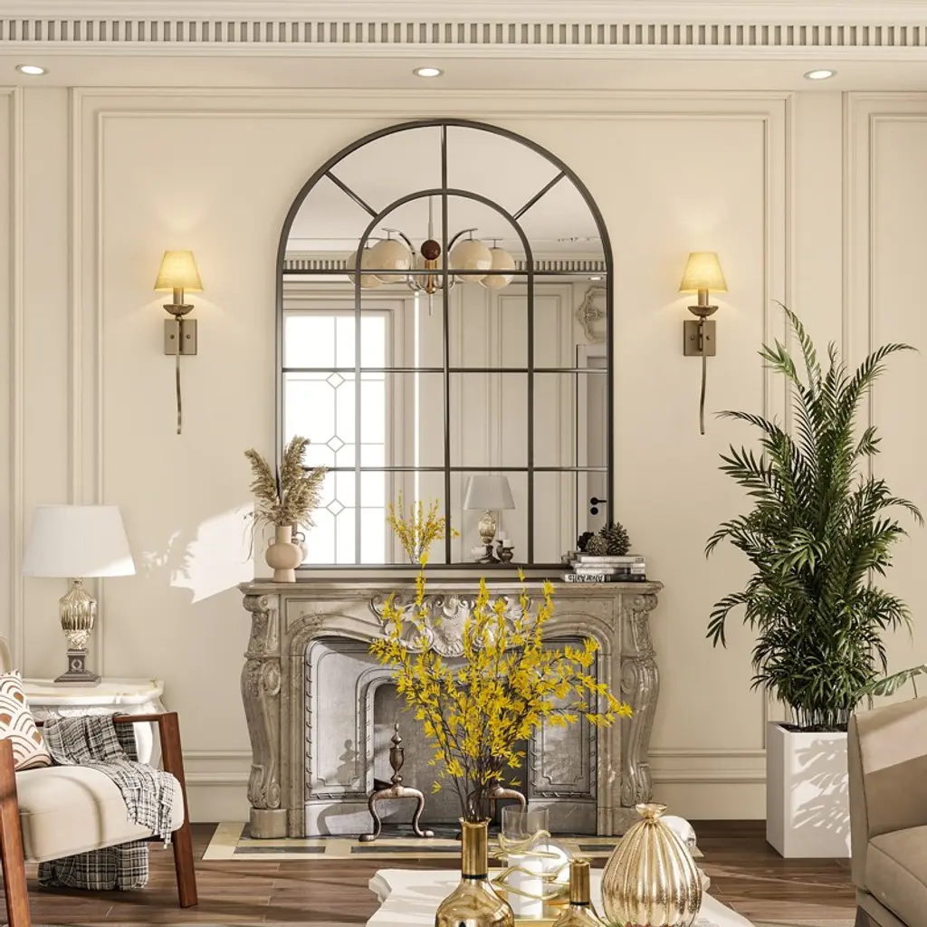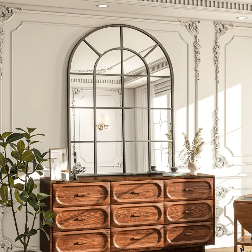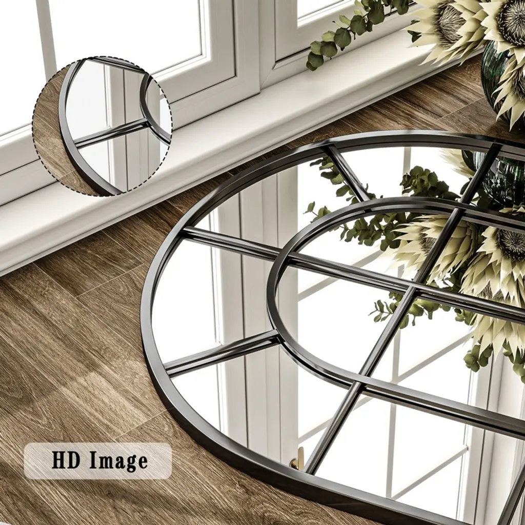 This wall mirror is designed with window pane - structured arched metal frame.The use of shatter - resistant glass not only guarantees safety during use but also provides high - definition imaging. Vintage Aesthetic:The opulent metal frame, adorned an arched window frame, imparts a distinct artistic allure to contemporary living spaces. Superior - Quality Glass:Constructed from top - tier glass, this mirror exhibits remarkable resistance to breakage even under external stress, ensuring secure usage. High - Definition Reflection:Advanced high - definition imaging technology enables the mirror to render clear and lifelike reflections, allowing for a more precise view of one's appearance. Convenient Installation:The installation of this bathroom mirror is engineered to be straightforward and hassle - free. With a user - centric design, the installation process can be easily completed by following the detailed step - by - step instructions. Specifications:Color: Black. Product Sizes: 24"x36" / 30"x40" (Measurements are taken manually and may have minor discrepancies). Materials: Iron alloy and high - quality glass.