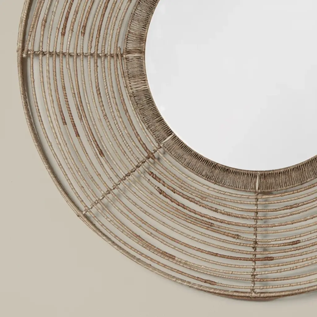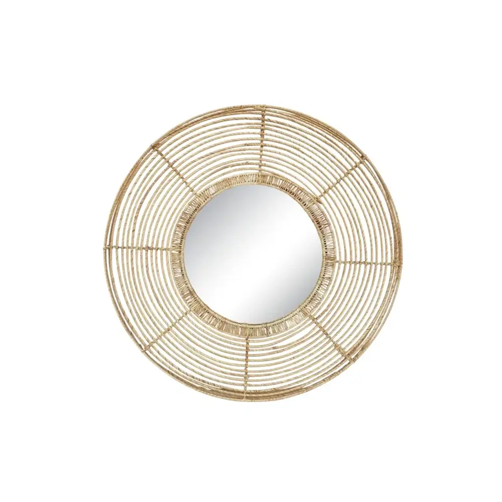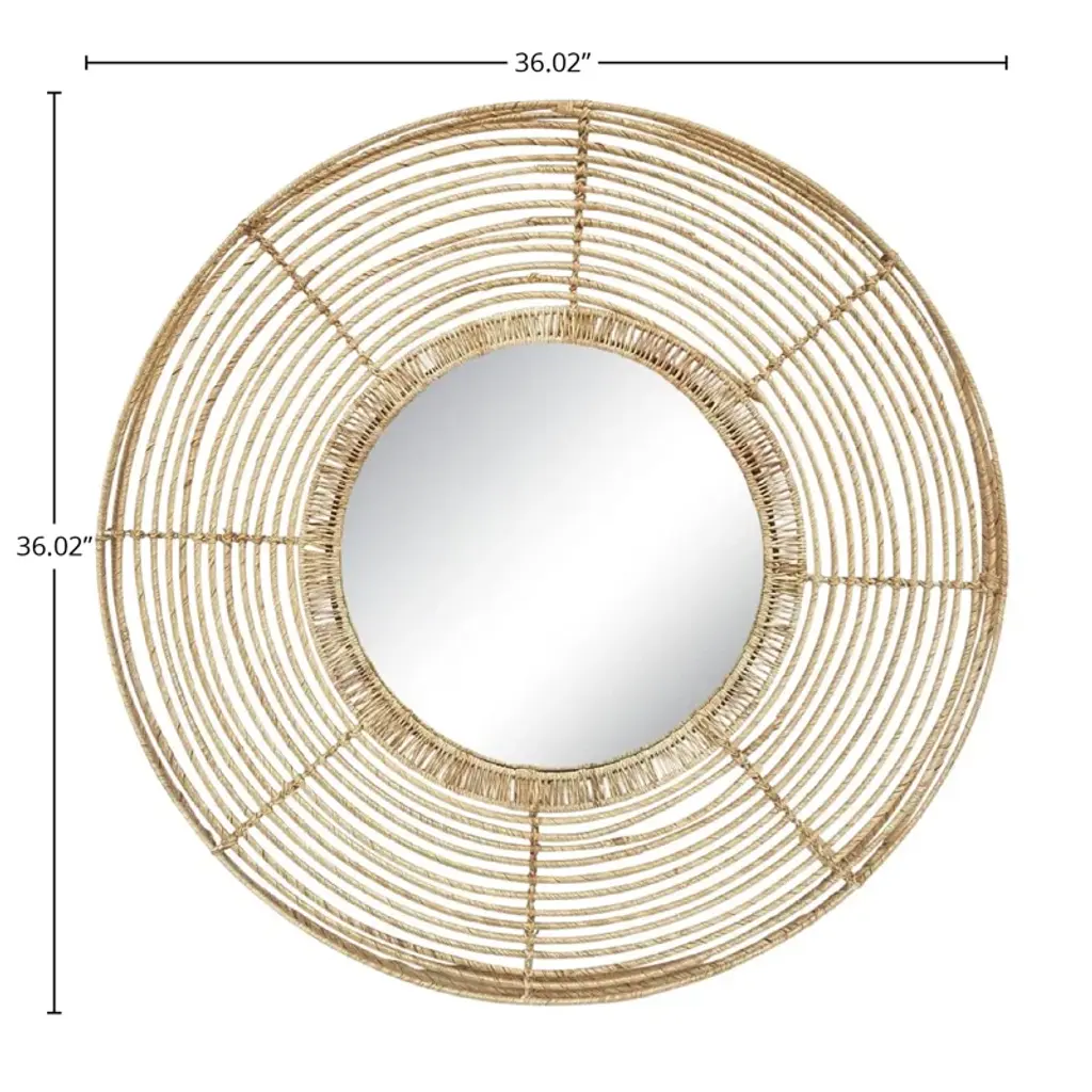 A classic yet contemporary design, this Beehive round mirror adds a sense of casual sophistication to your living space or your kitchen. Featuring rattan peel wrapped around a wireframe, the rattan design complements any design style with organic modern appeal. This versatile and stylish piece works well in any space.